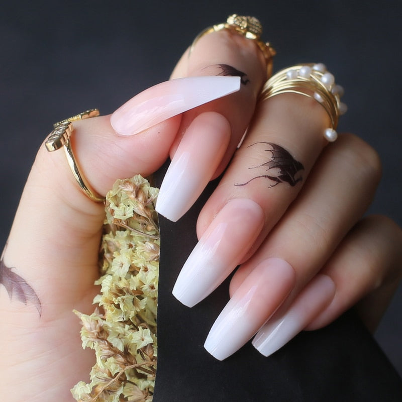 Easy to Use:Nude ballerina fake nails with glue strcker can get your favorite manicure in just 5 minutes without waiting at the nail salon.