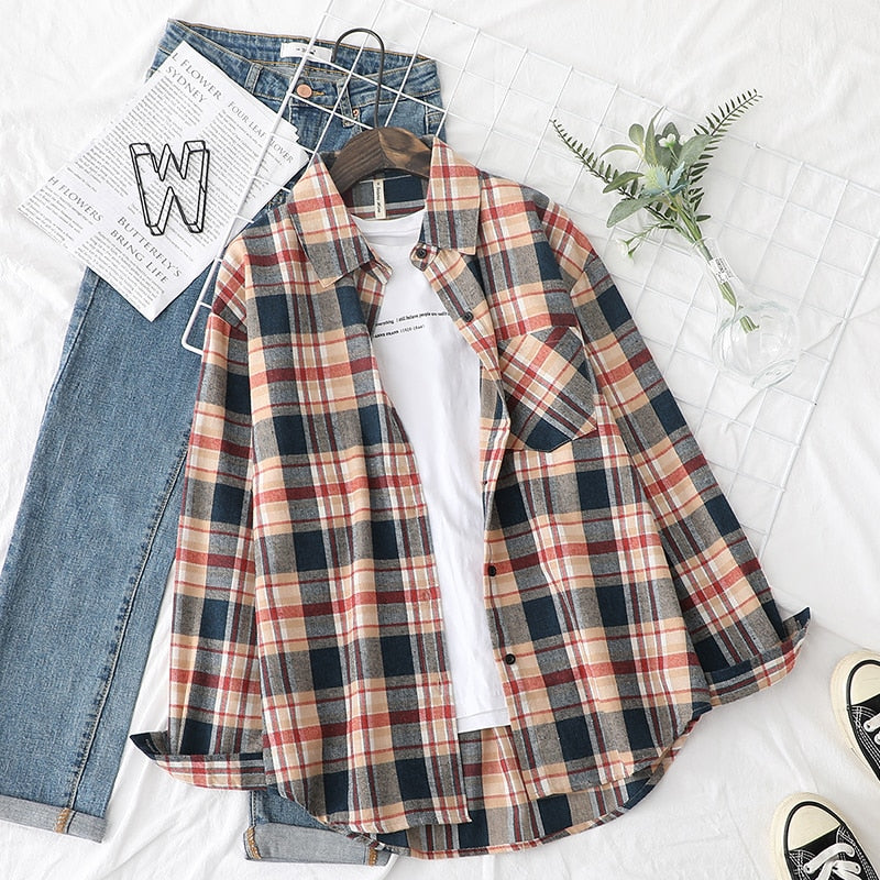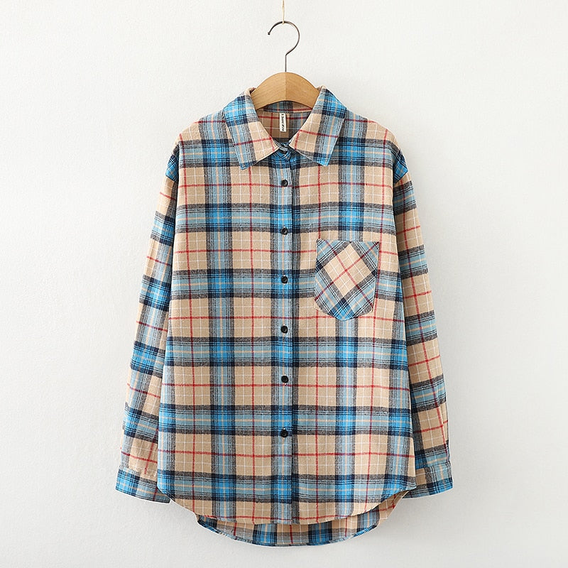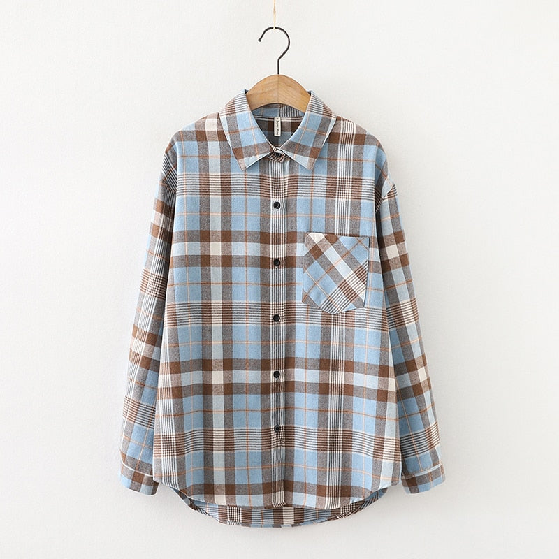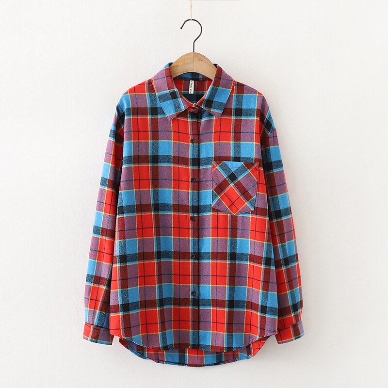Plaid Shirts Womens Checked Blouses And Tops Long Sleeve Female Casual Print Shirt Loose Cotton Blusas Outwear Autumn News
