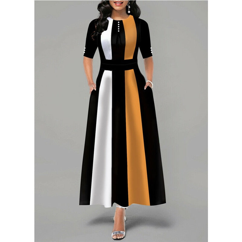 Plus Size Womens Vintage Swing Dress Office Lady Dresses Ladies Half Sleeve Party Skater Dresses Woman Dress Autumn Sundress