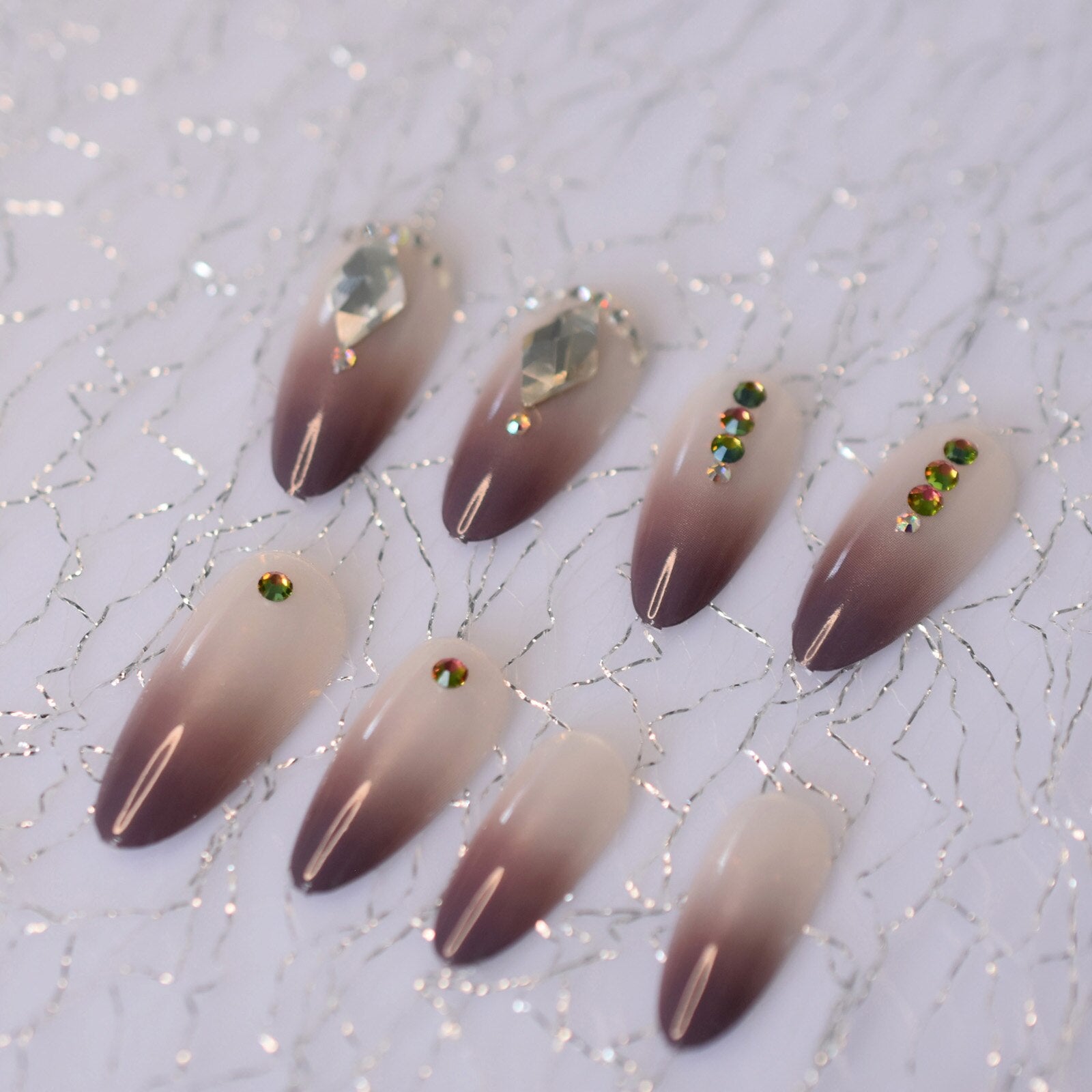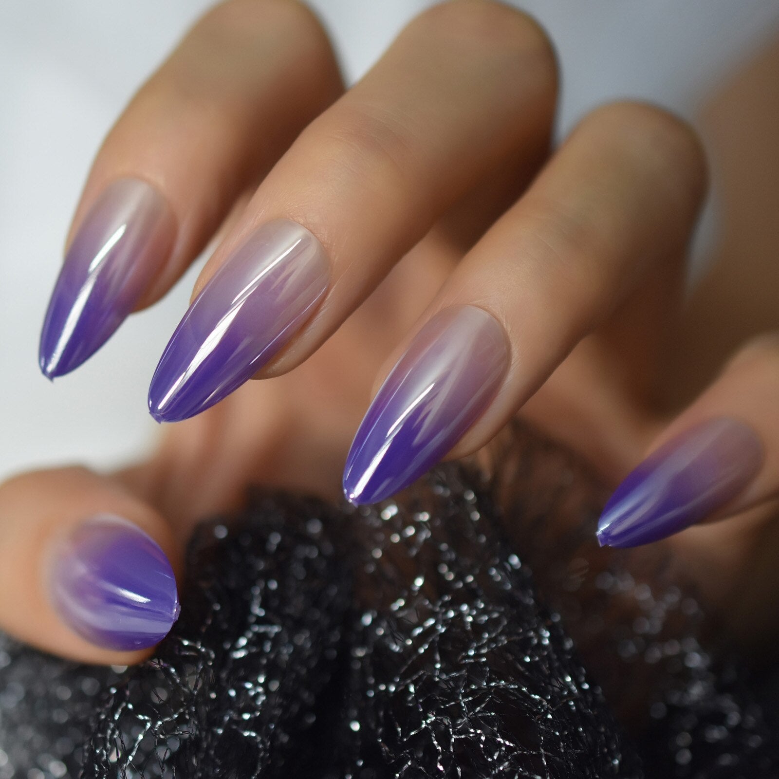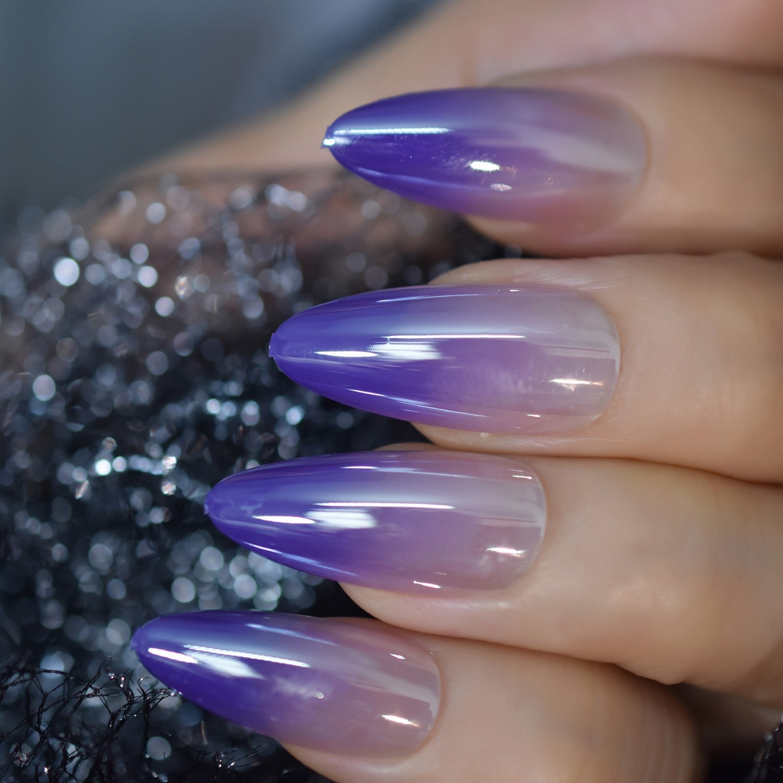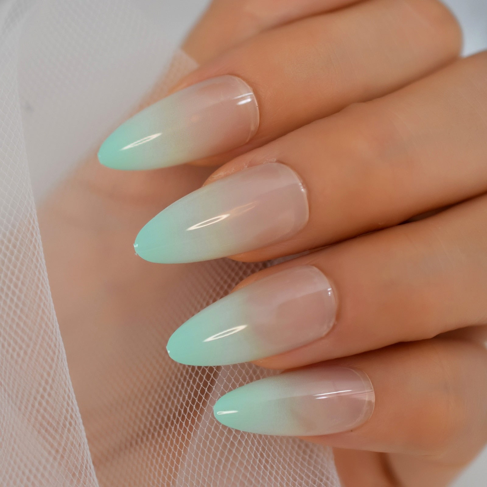 Pre-designs Oct. New Press On Nail Acrylic Fingernail Tips Blue Fadeing Nail Almond Medium False Nails Reusable Nails Putty-Nail Inspo