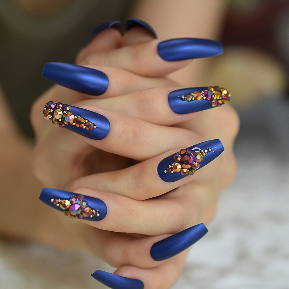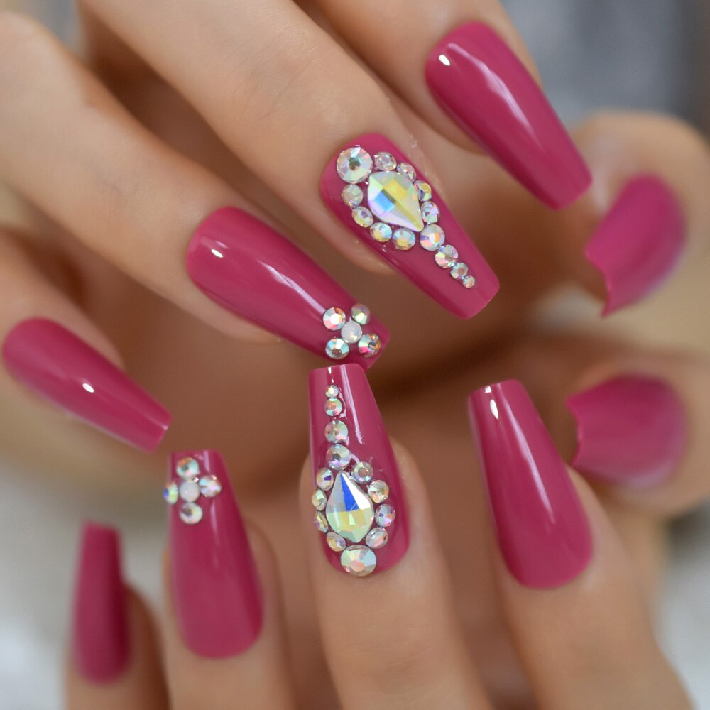 Press On Nail Red Extra Long Glitter Fake Diamond Rhinestone Pre Designs Coffin Ballerina Supplies For Professionals Wholesale-Nail Inspo