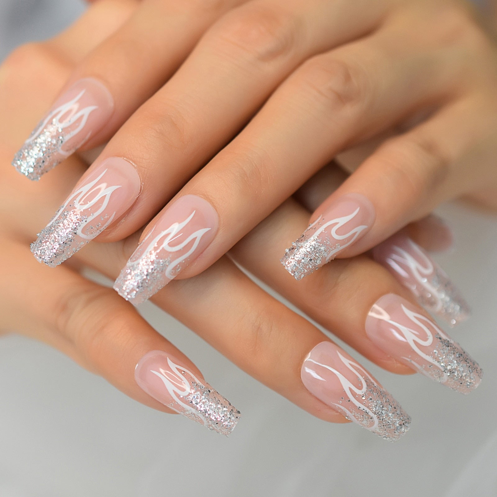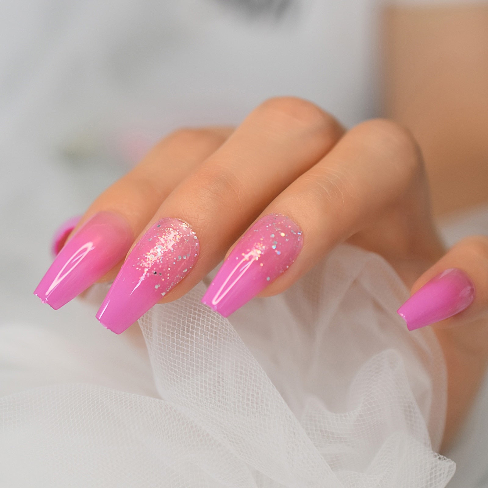 Press On Nails Medium Length Violet Glitter Coffin Ballerina Fake Nails Set Full Cover Gel False Nail Art Women Valse Nagels-Nail Inspo