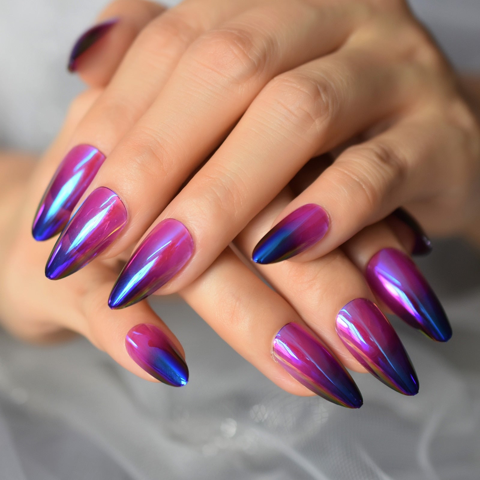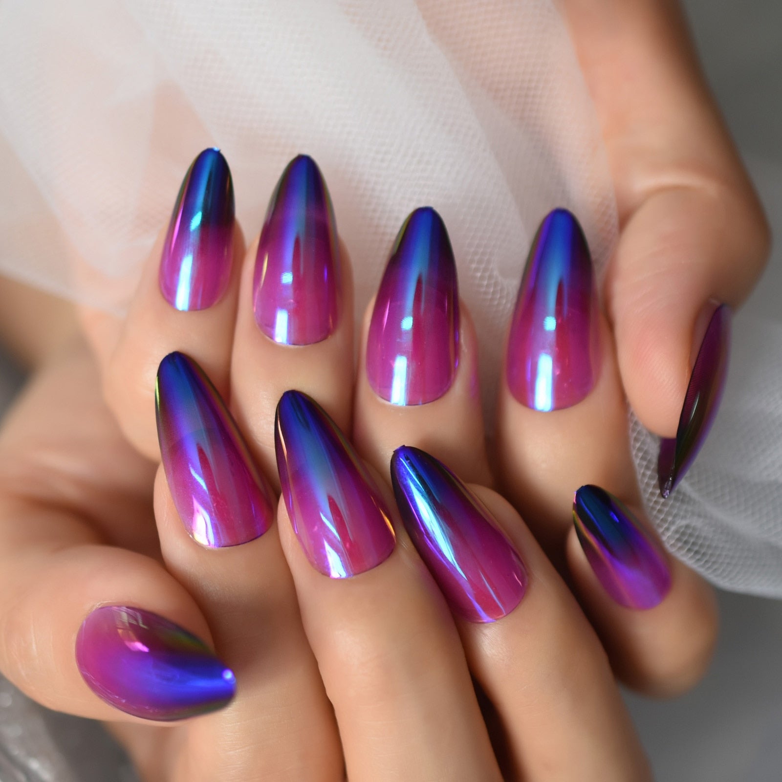 Purple To Dark Blue Fading Nail Translucent Medium Almond Press On Full Cover Fingernail Manicure Supplies For Professionals Set-Nail Inspo