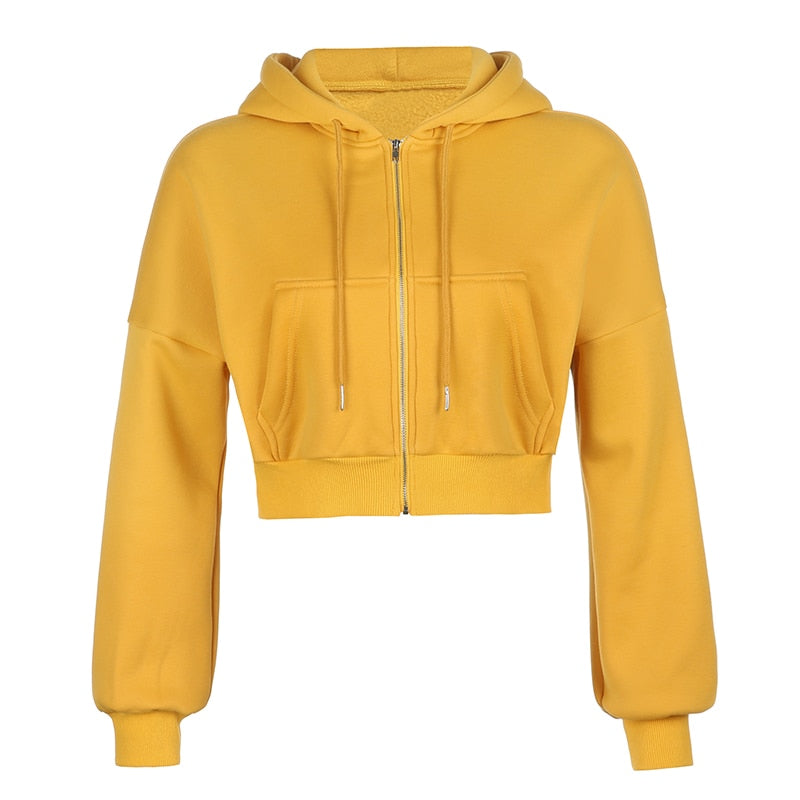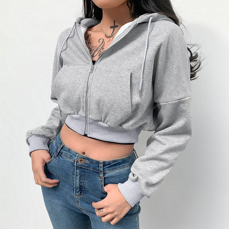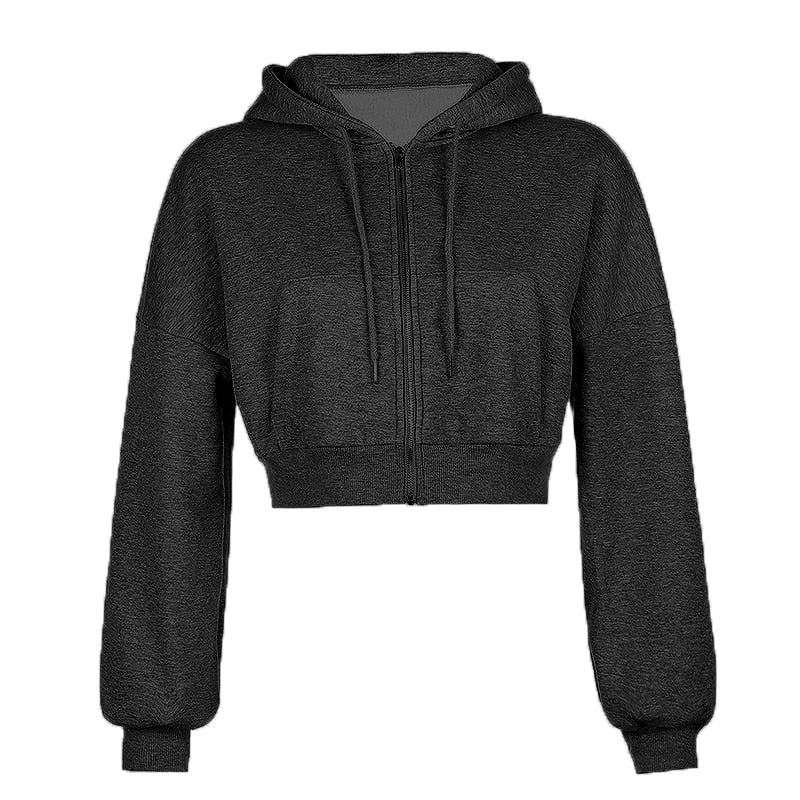 Rapcopter Casual Zipper Basic Short Pollovers Autumn Winter Long Sleeve Hoody Sweatshirts Hooded Streetwear Women Outfits Coats