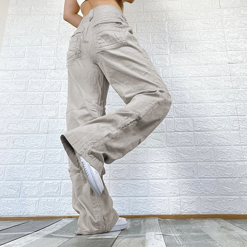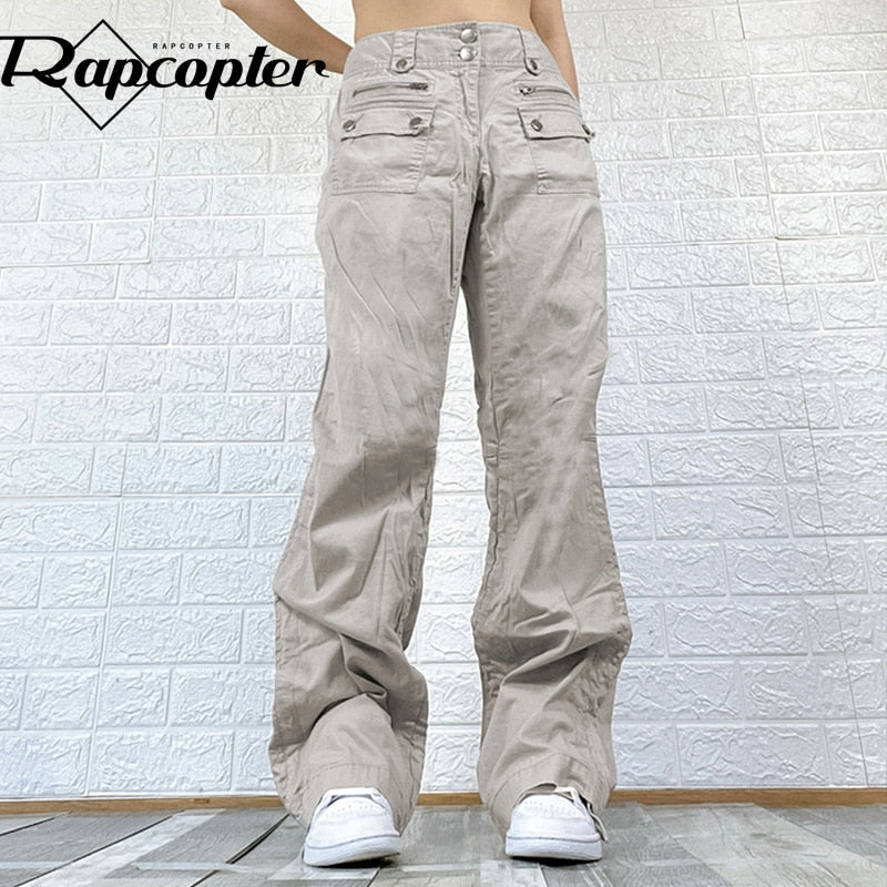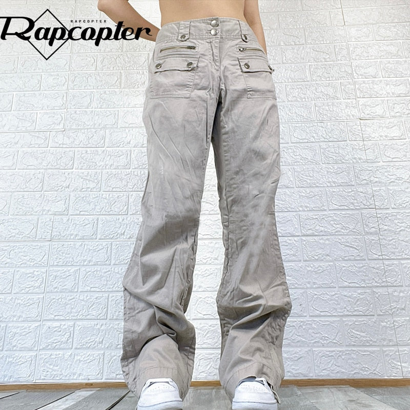 Rapcopter Gray Ruched Cargo Jeans Zipper Button High Waisted Sweatpants Vintage Pockets Zipper Baggy Denim Trousers Women Korean