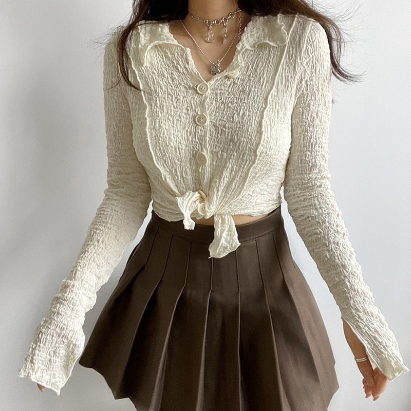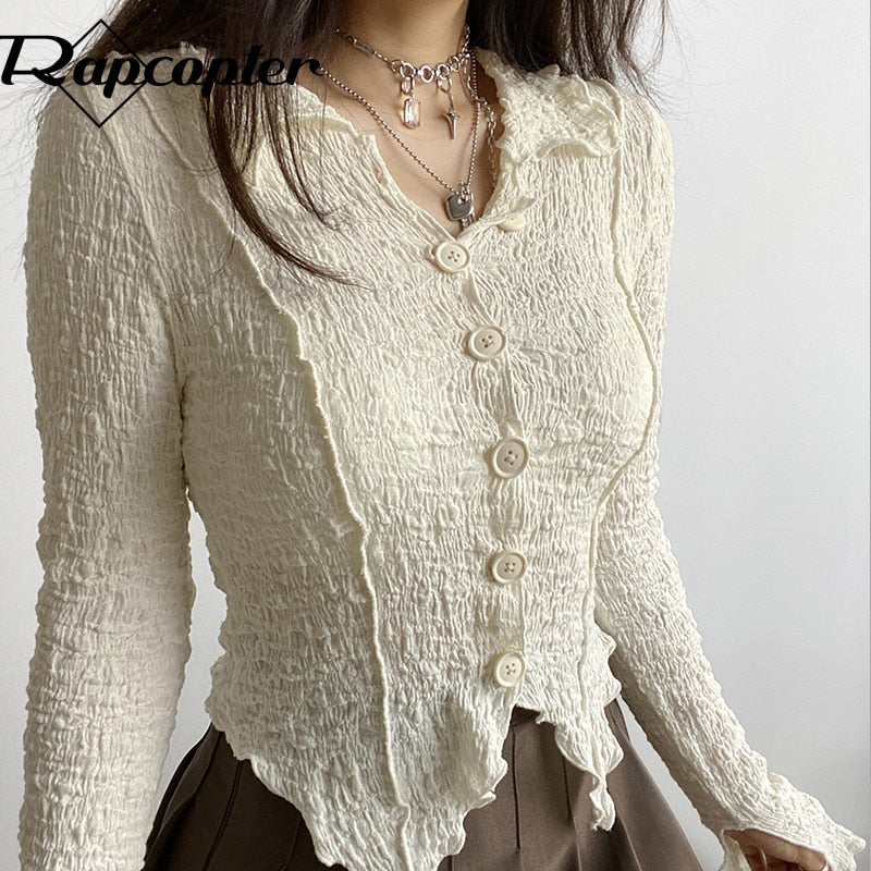Rapcopter Knitted Crop Top Kawaii Long Sleeve T Shirt Skin Irregular Kawaii Cardigans Long Sleeve Korean Chic Tee Women Autumn