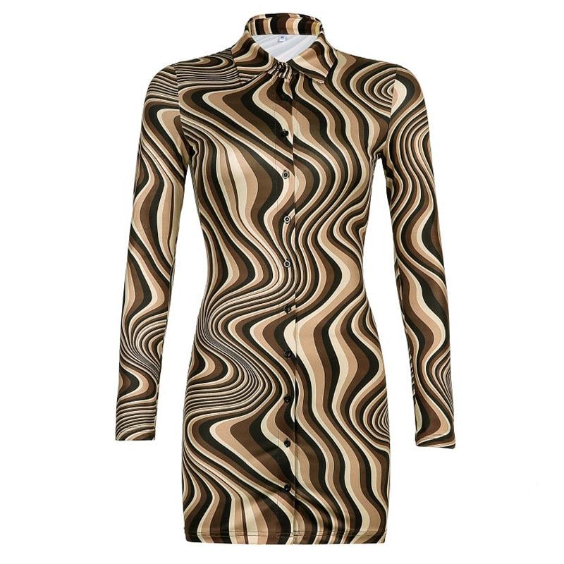 Rapcopter Paisley Brown Mini Dress y2k Aesthetic Sundress Turn Down Collar Vintage Short Dress Button Skinny Bodycon 2021 90S