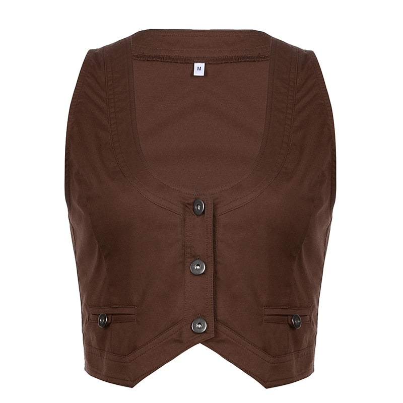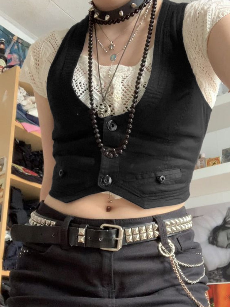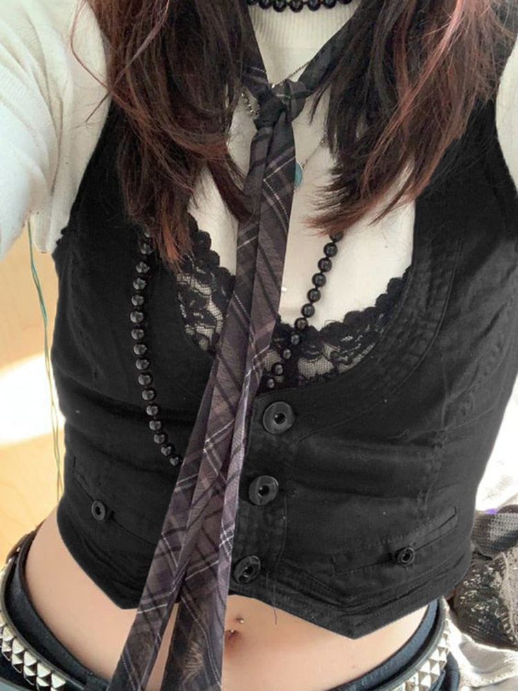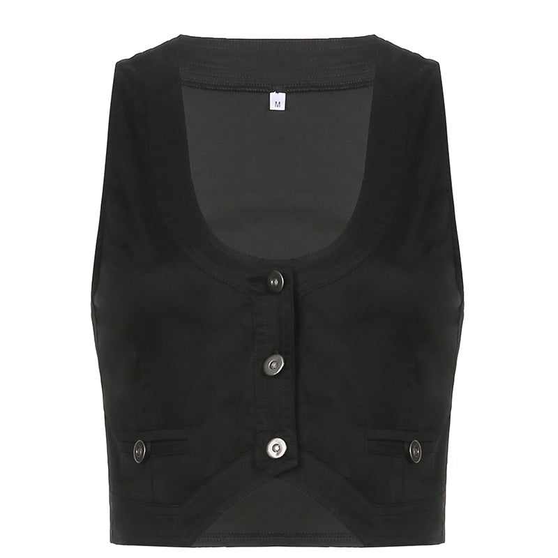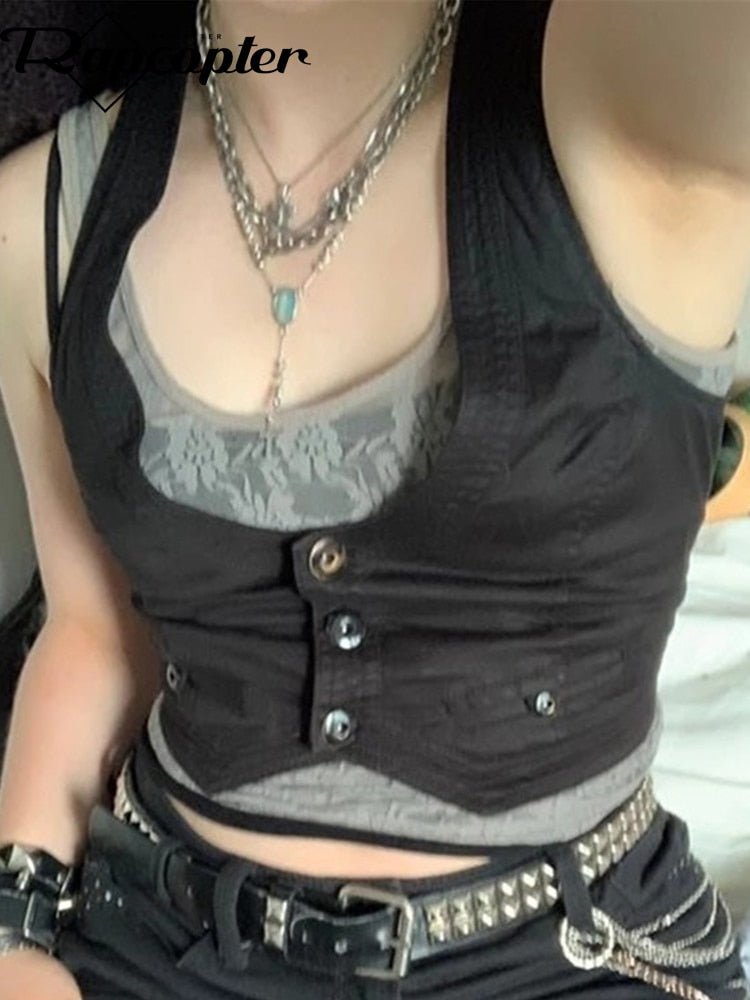 Rapcopter y2k Button Corset Top Black Sleeveless Tank Tops Skinny V Neck Aesthetic Punk Crop Top Grunge Fairycore Women Vests