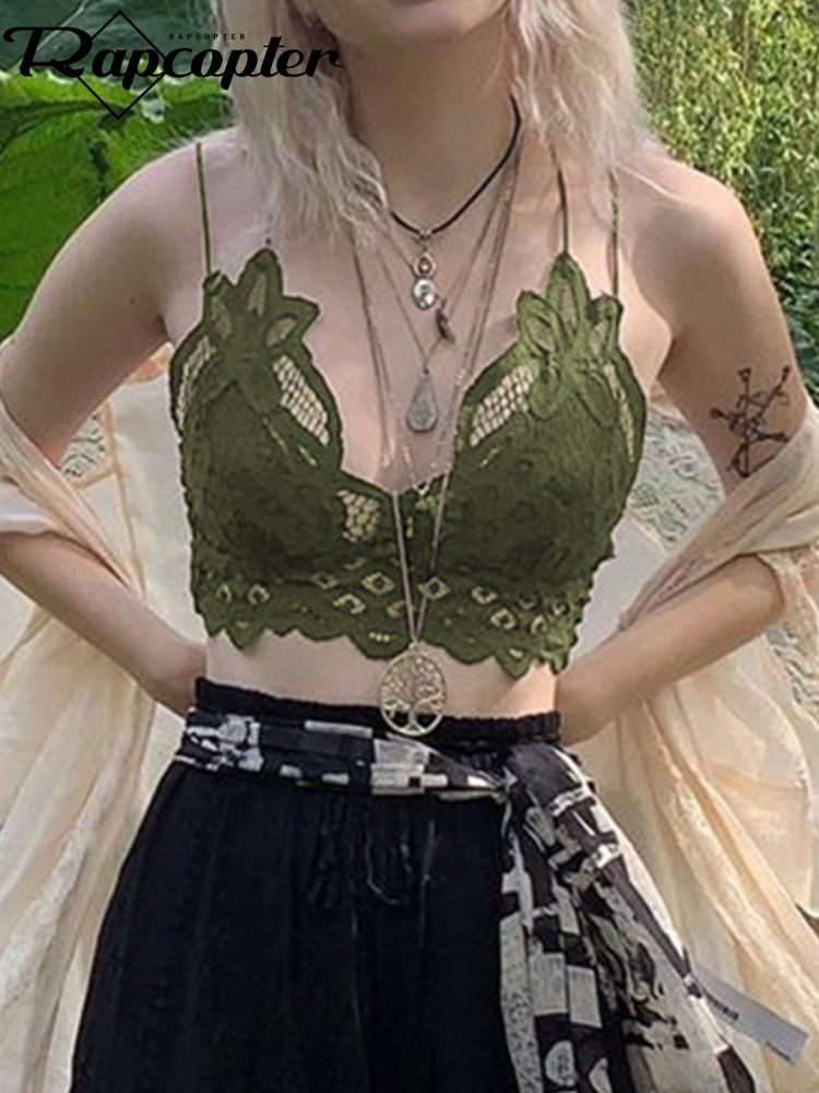 Rapcopter y2k Cute Sweet Crop Top Lace Backless V Neck Mini Vest Vintage Grunge Fairycore Corset Sweats Women Holiday Camis Chic
