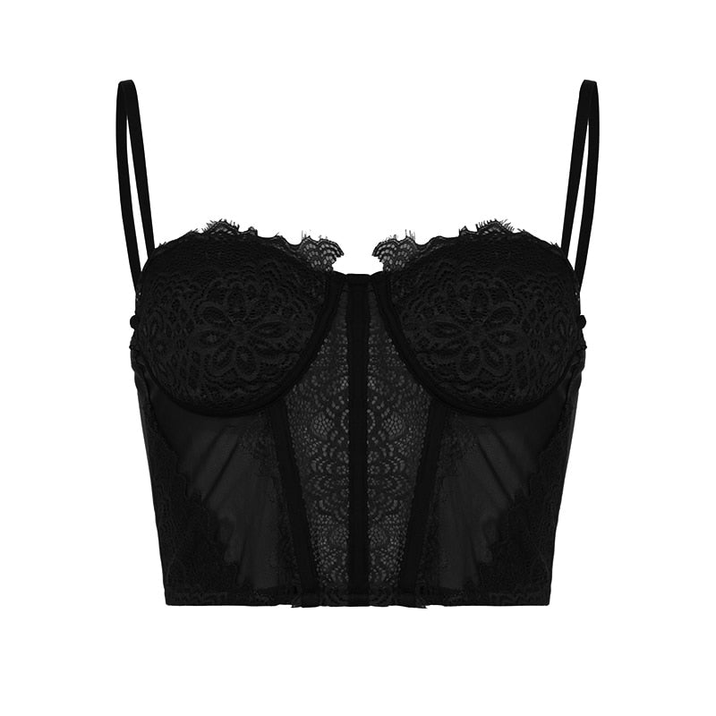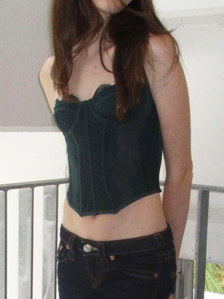 Rapcopter y2k Lace Corset Top Patched Frill Bow Crop Top Vintage See Through Sexy Camis Women Backless Party Beach Mini Vest 90s