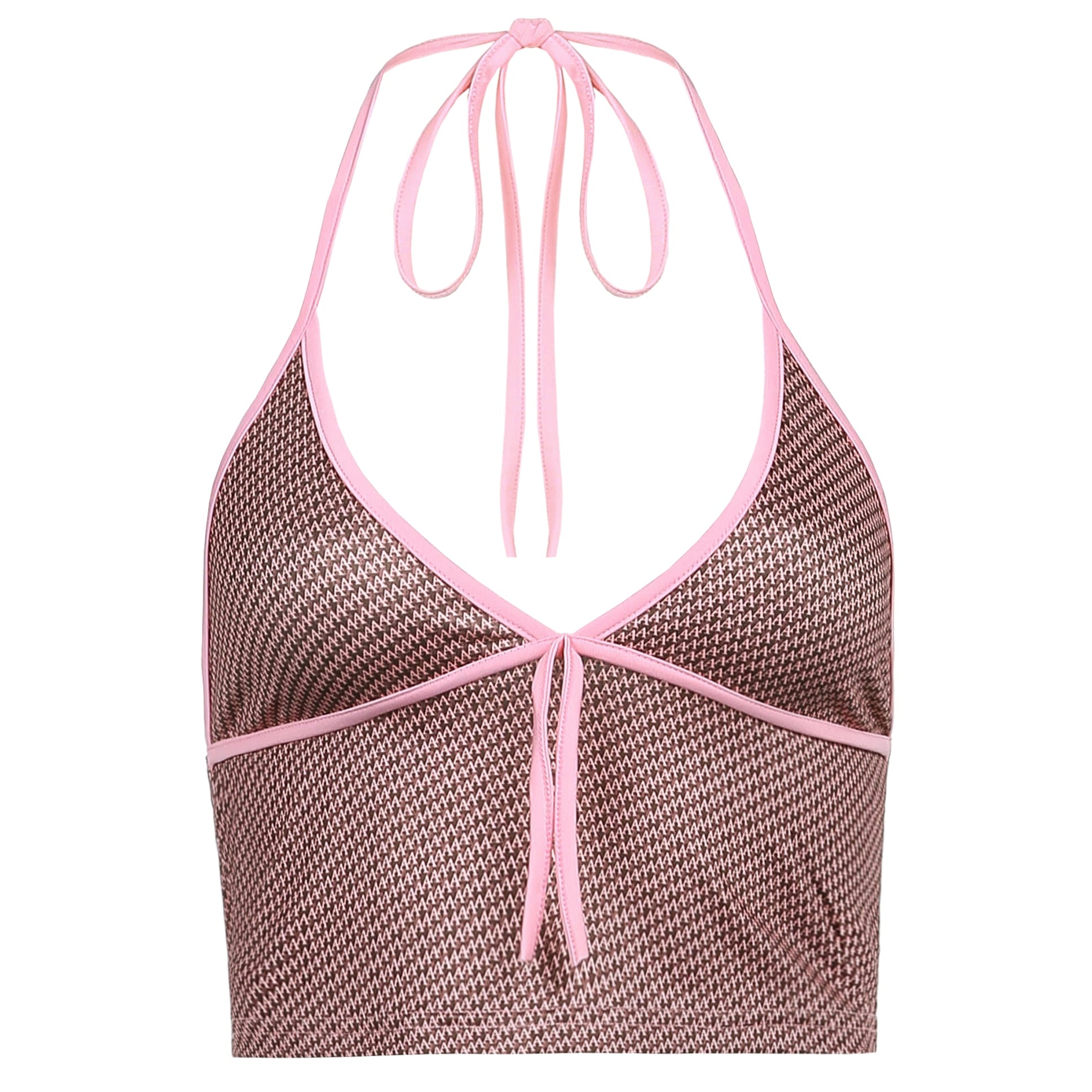 Rapcopter y2k Pink Printed Camis Cute Crop Top Tie Up Tank Top Retro Party Harajuku Tee Women Sweet Mini Vest Sweat Holiday 90s
