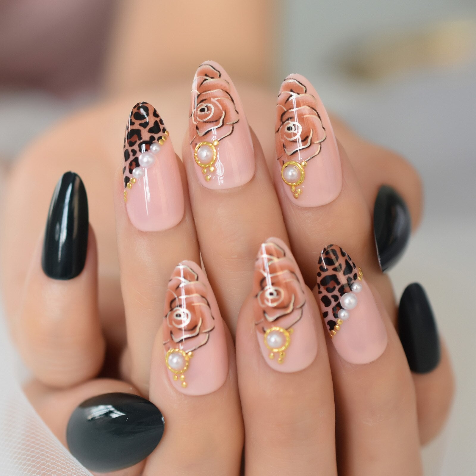 Rose Nails Press On Nails Almond Medium-Short Fingernails Tips Flase Nails Art Suppliying For Professionals EchiQ Nails 24pcs-Nail Inspo
