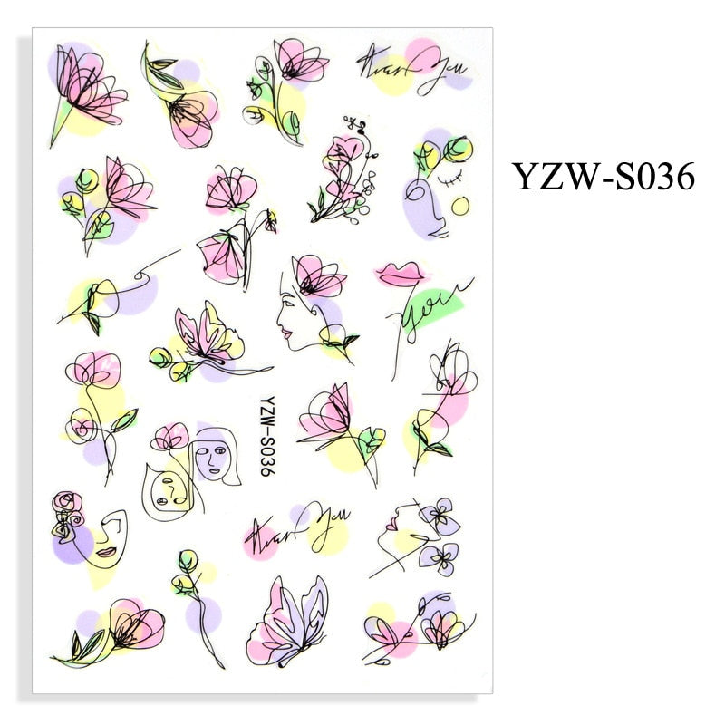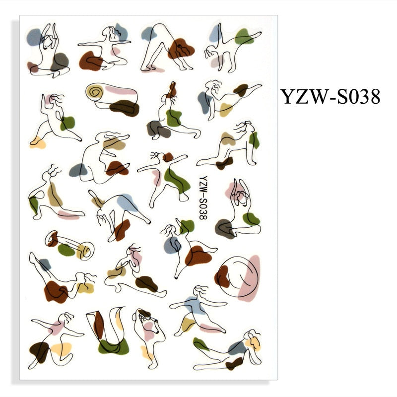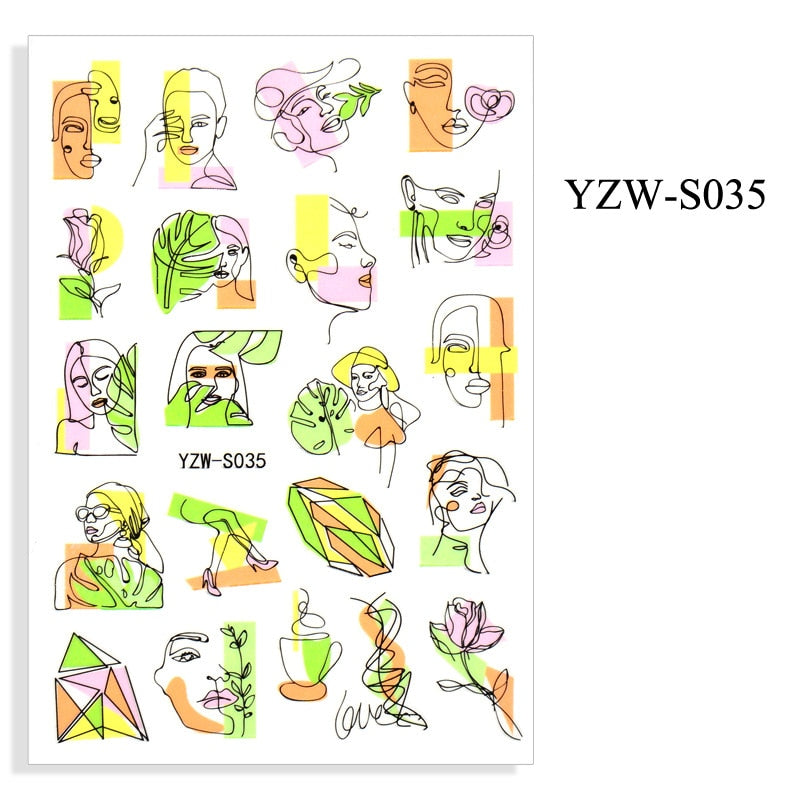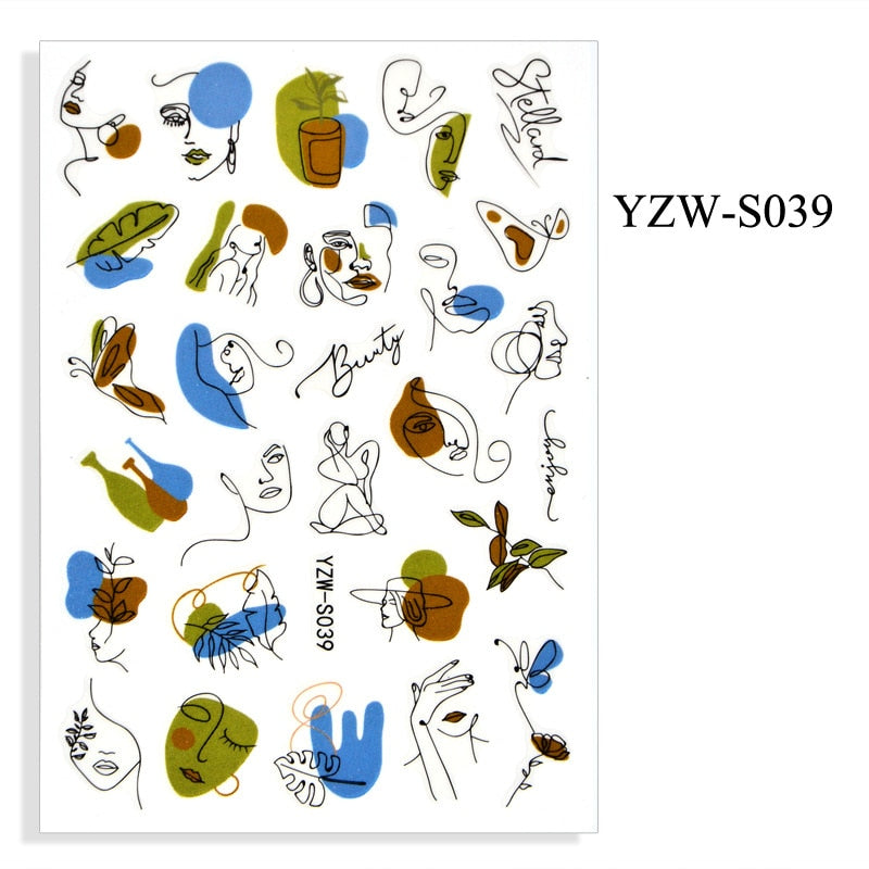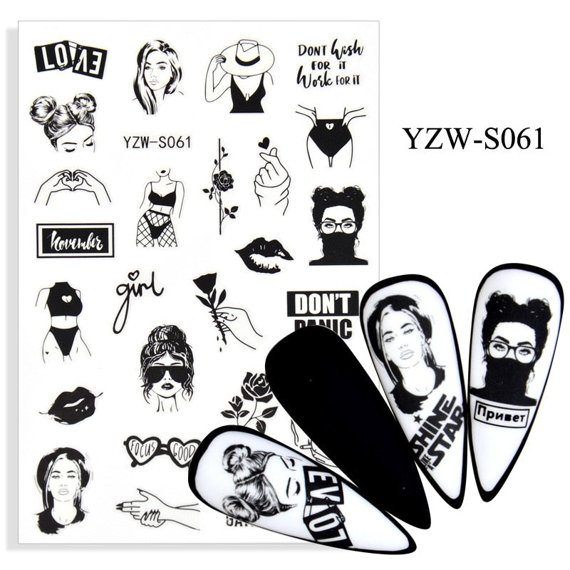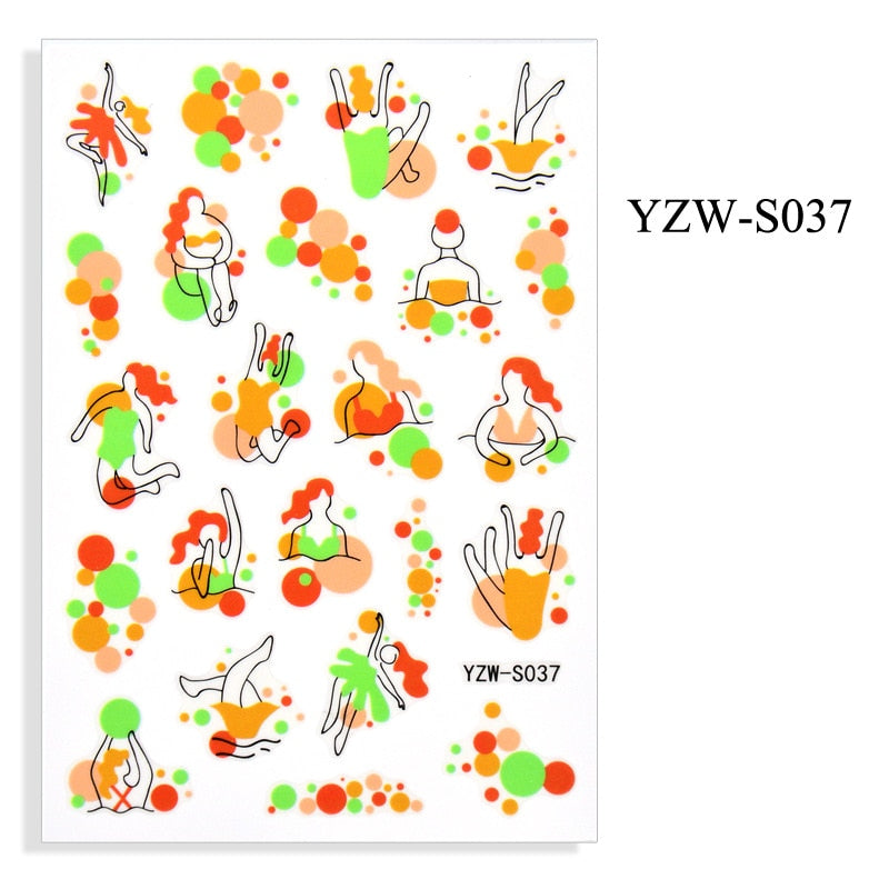 Sexy Lady Shaped Fashion Nail Sticker Geometric Abstract Line Nails Inspired Decals Art 3D Adhesive Sliders Manicure Accessory-Nail Inspo