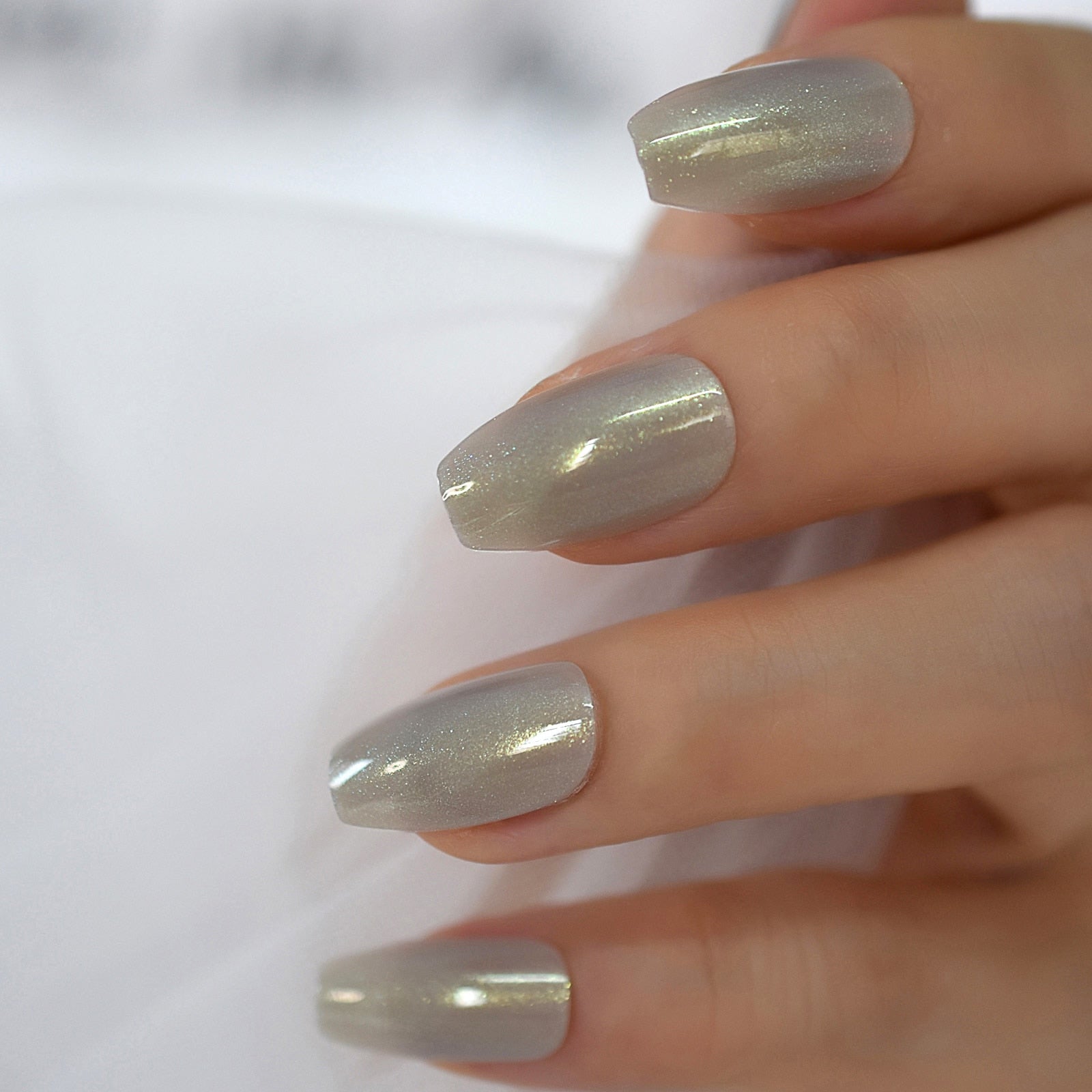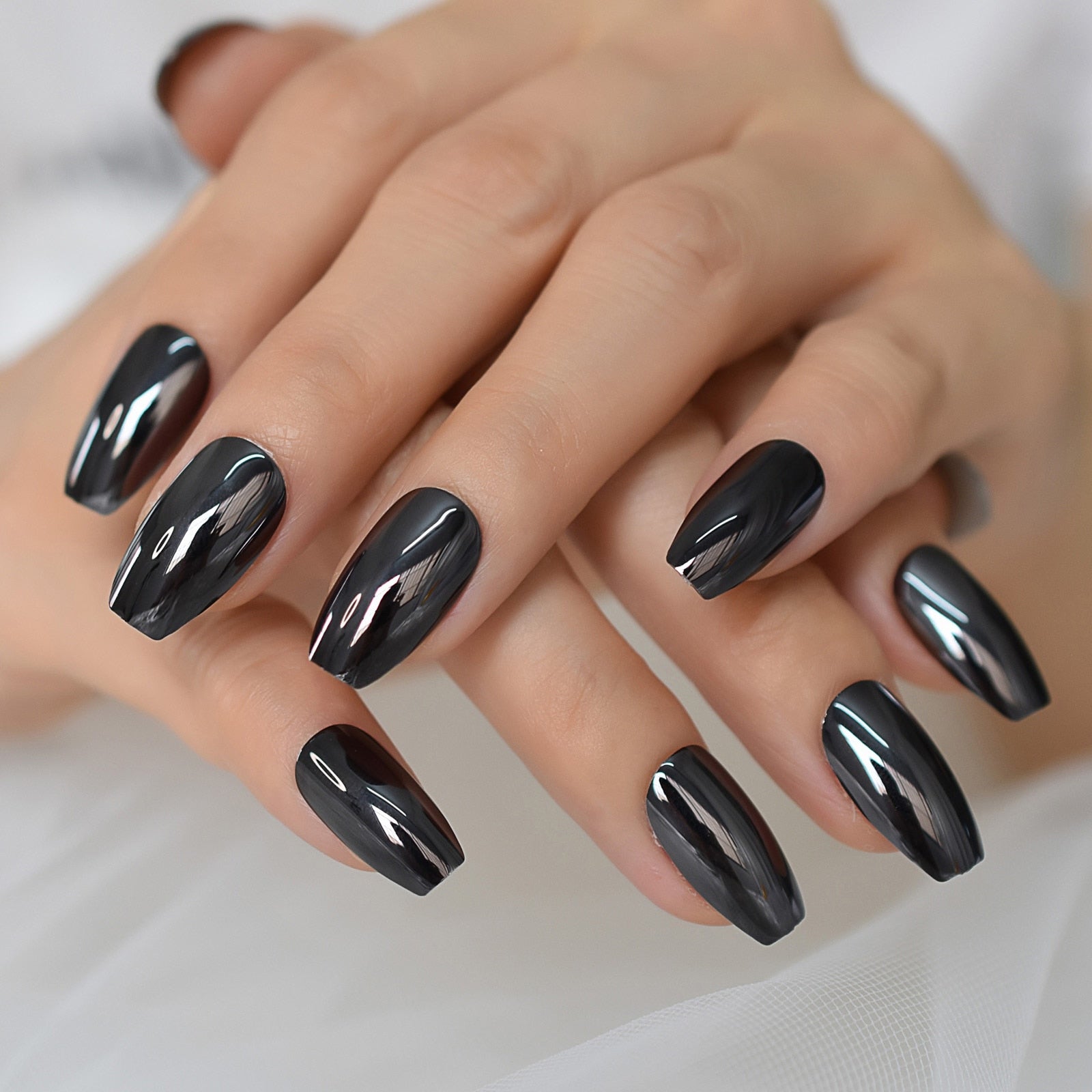 Short Coffin Mirror Black Color Nail With Dsign Gel Tip Decoration Nails False Hand Dummy Stick On Nail Nails Wholesale Charming-Nail Inspo