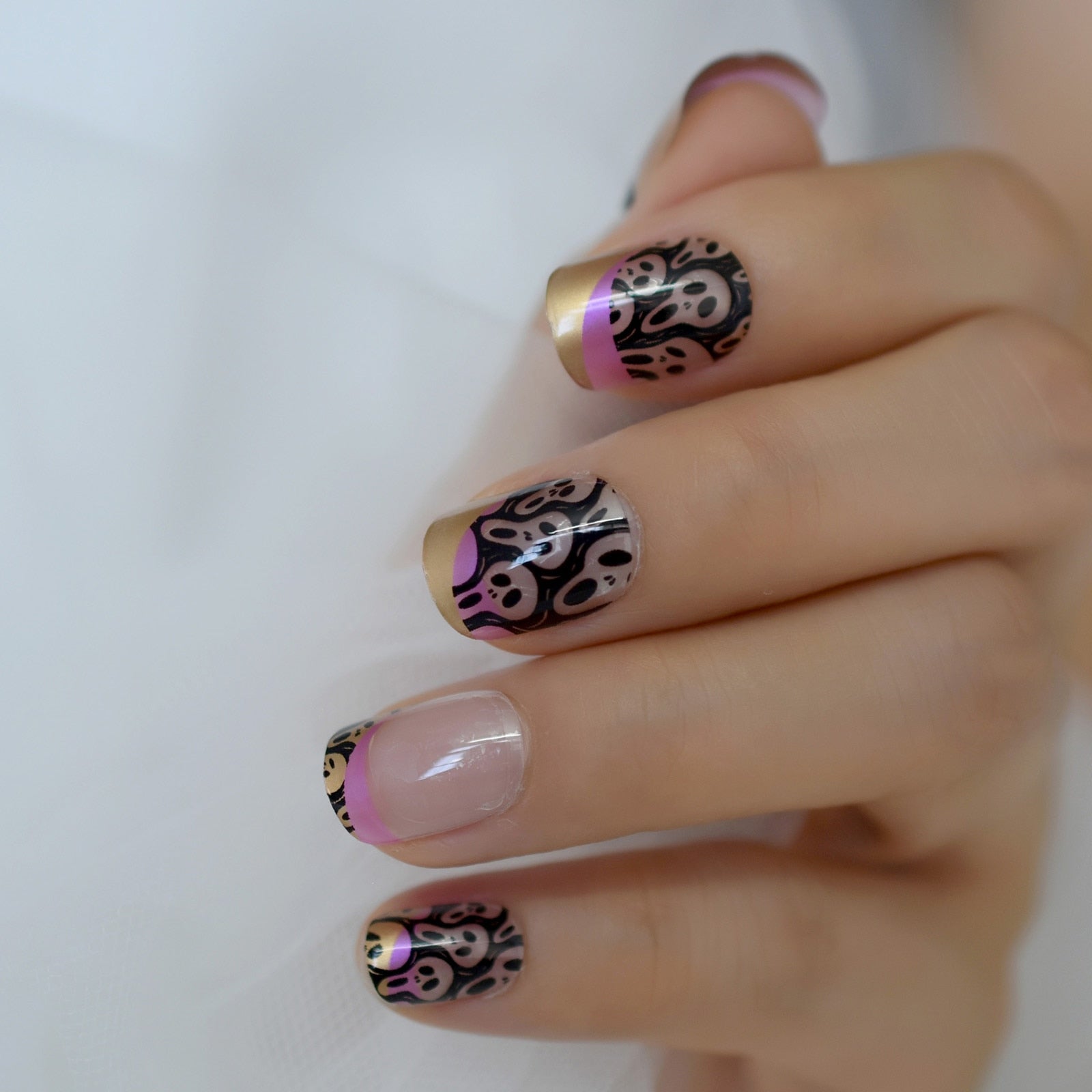 Short Fake Nails With Designs Skull Halloween Antic Artificial Nails Tips Nude Round Daily Creative Press Nail On Finger-Nail Inspo