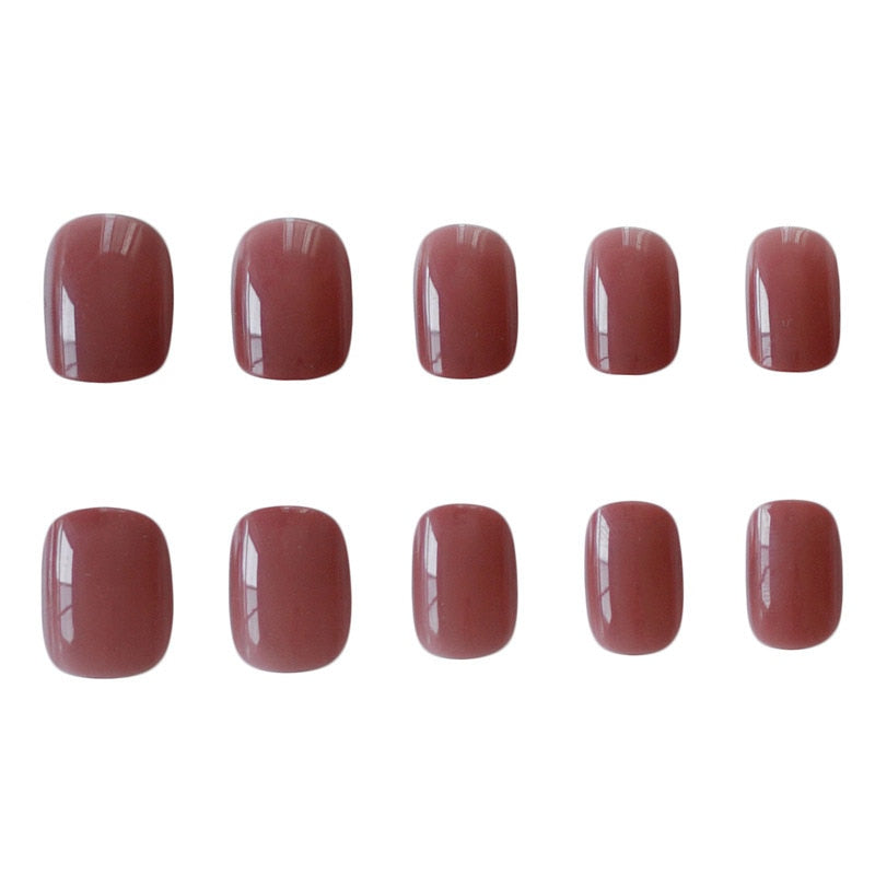 short false nails New Korean Jelly fake nails with glue Ins Elegent Pure Color Manicure Decorations Short Round False Nail Tips-Nail Inspo