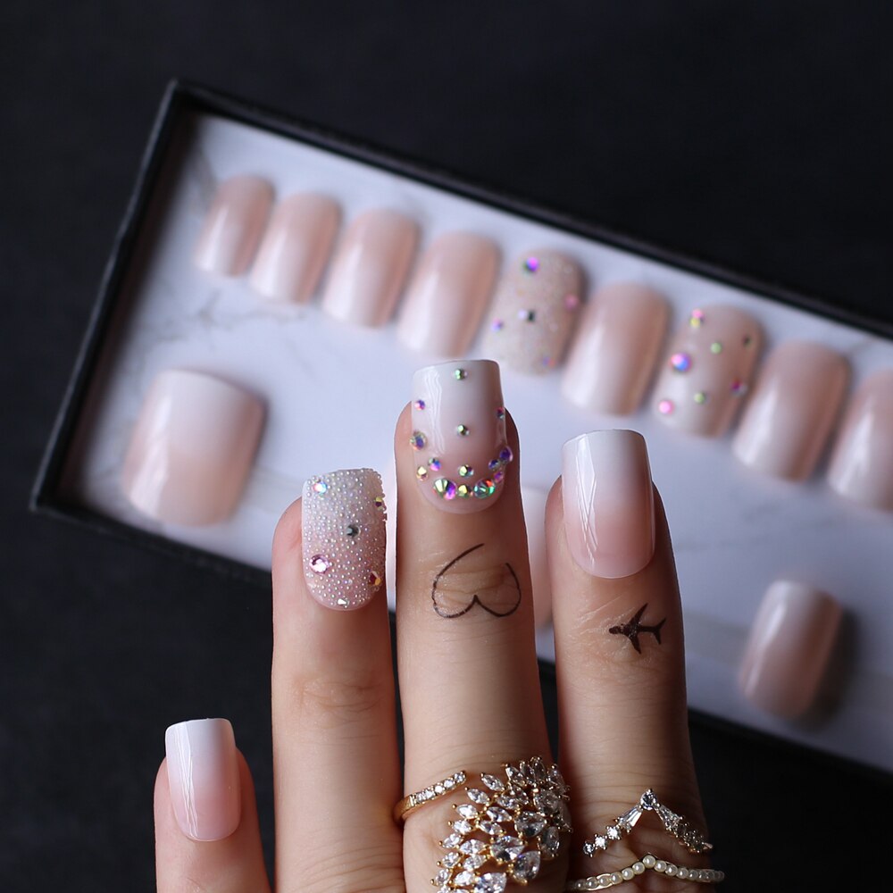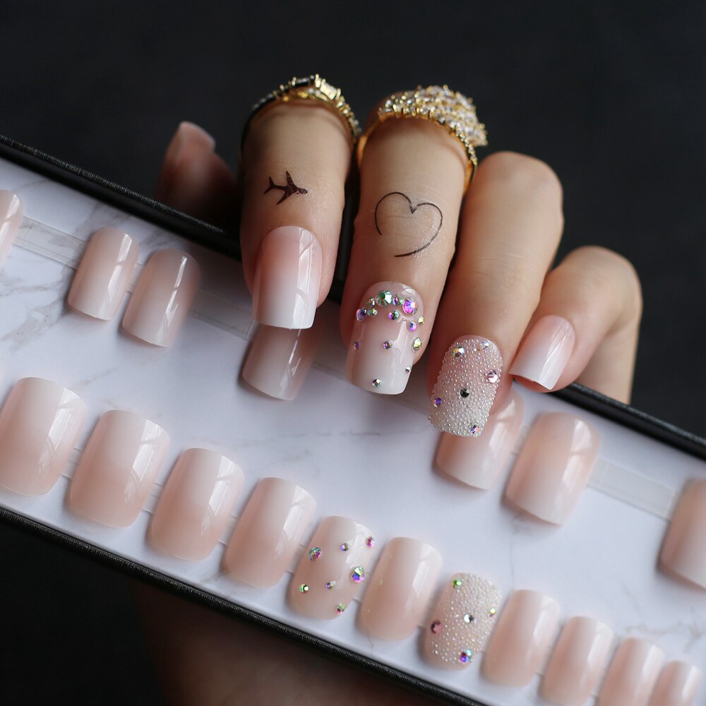 Short square Artificial nails Baby bommer Press on nails Custom private logo Ombre Fake nails Nude Natural False nails with box-Nail Inspo