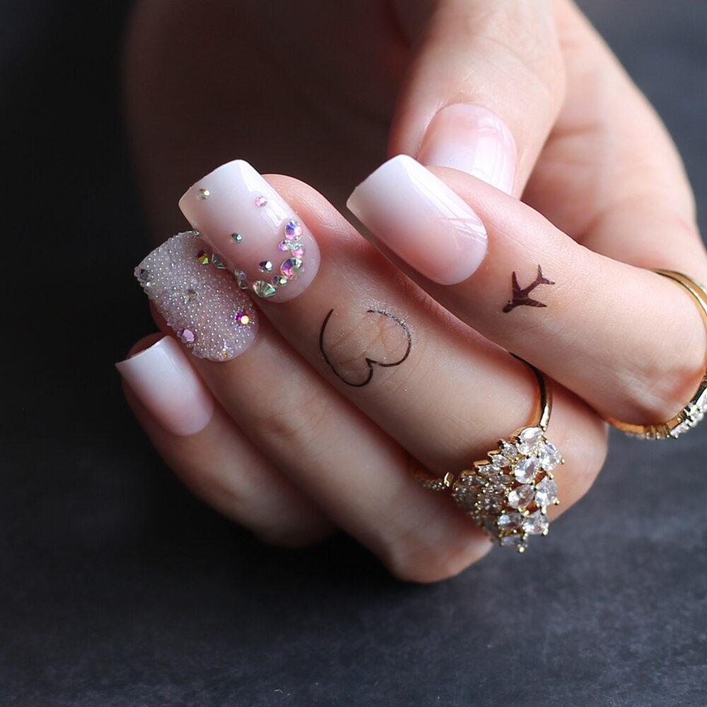 - Choose a suitable size of adhesive stickers or nail glue for your nails and stick it on your nails.