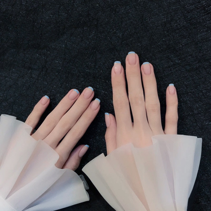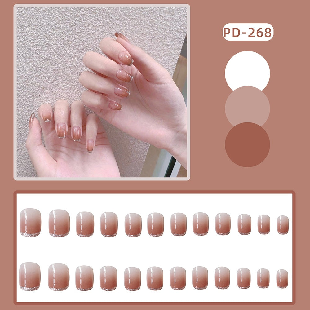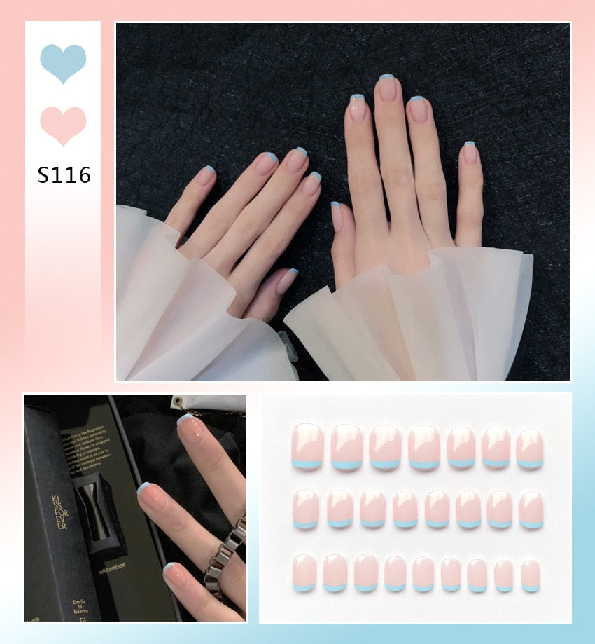 Simple French Short Style Designs Natural False Nails Suitable Girls Daily Wearing Full Cover Finished Detachable Nail tips glue-Nail Inspo