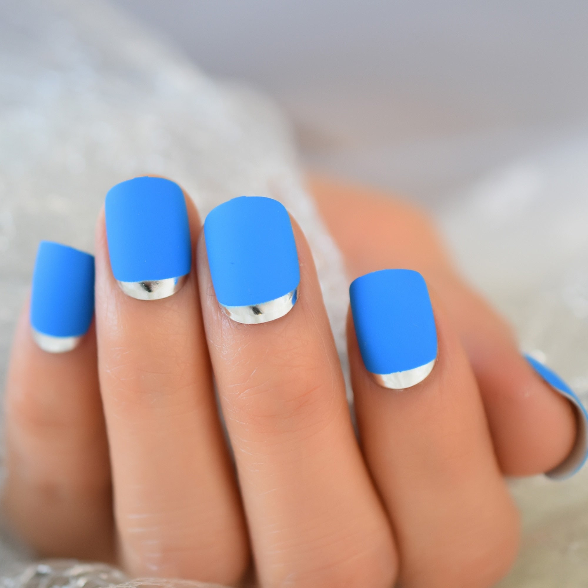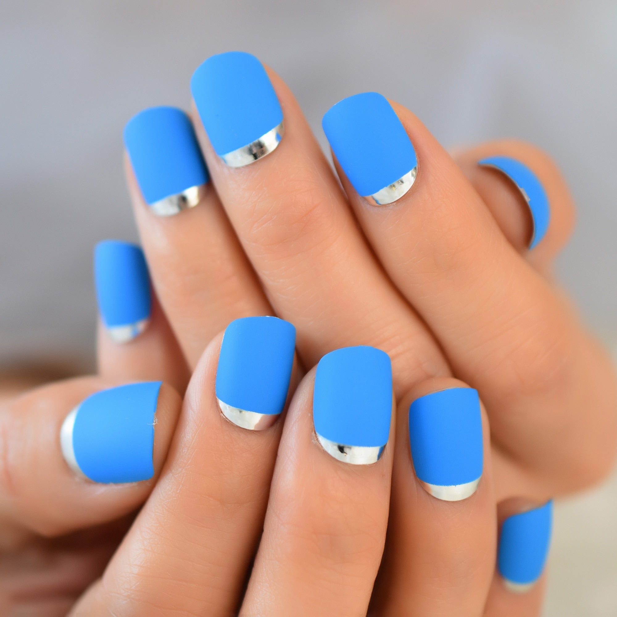 Sky Blue Full Nail Kit False Tips Press Ons Short For DIY Nail Art Salon Fake Nail Extension With Glue Adhesive Matte Squoval-Nail Inspo