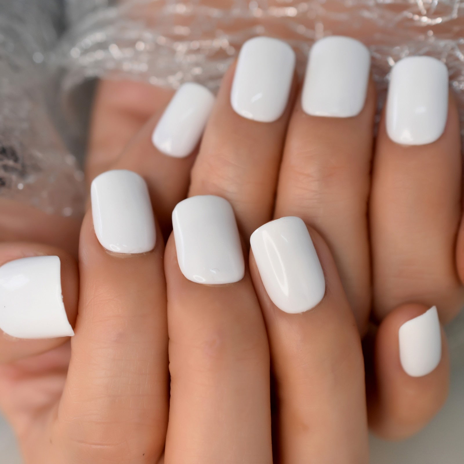 Square High Light Press On Fake Nails White Short Nails Wholesale Manicure Nail Supplies Polygel Nail 24pcs/set With Tabs-Nail Inspo