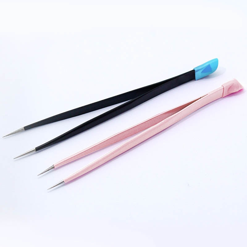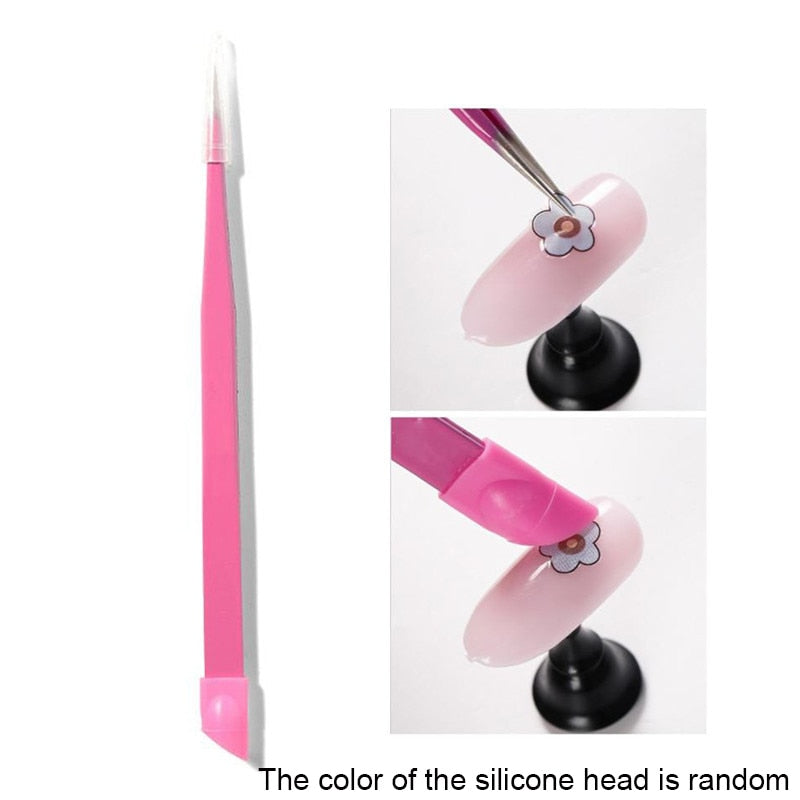 Straight Nail Tweezers with Silicone Pressing Head for 3D Sticker Rhinestones Water Sticker Picker Nails Tools Stainless Steel-Nail Inspo