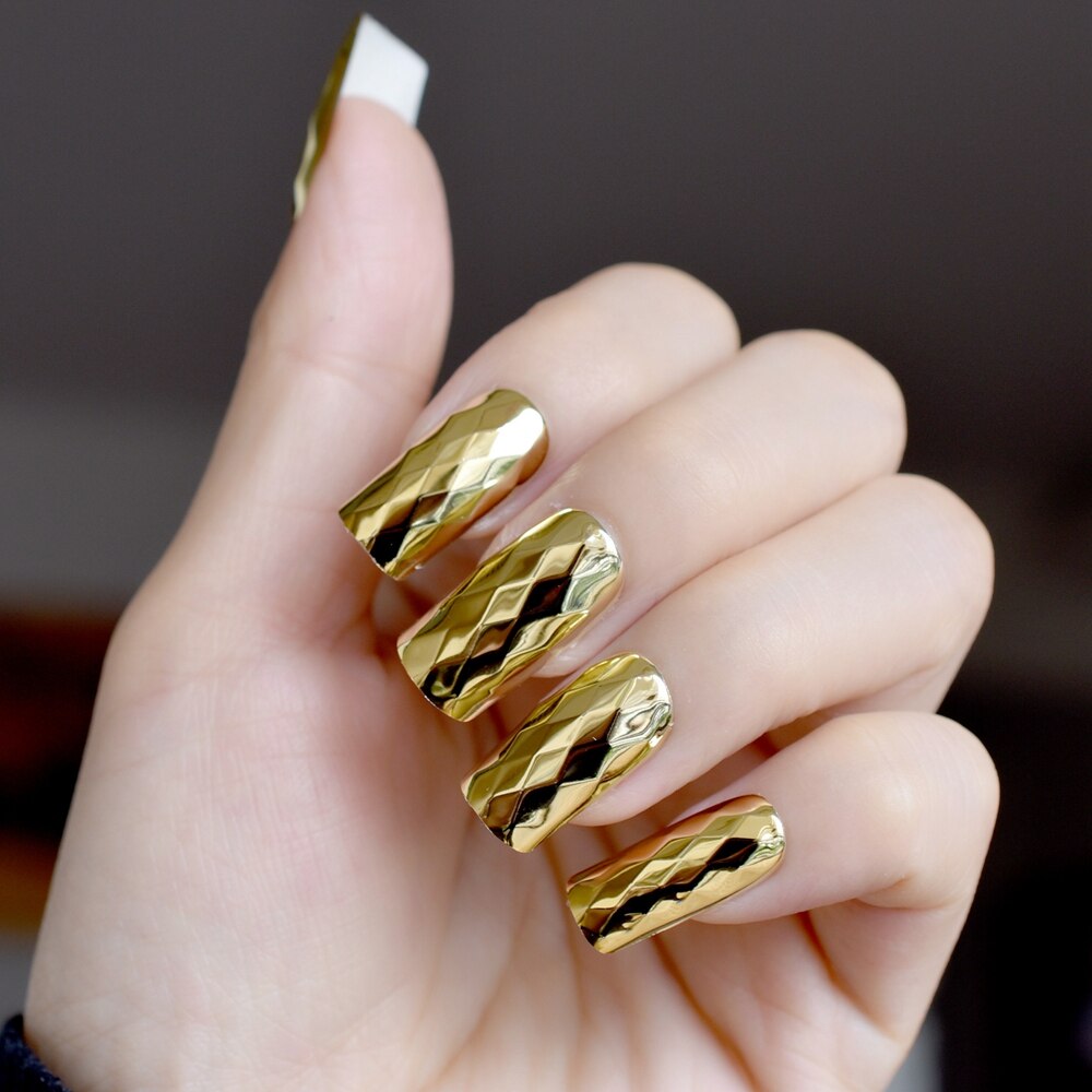 Studio 24 Artificial Nails Black Square Medium Fake Nail Art Tips gel Rose Gold Glitter Decoration Shimmer Acrylic Nail-Nail Inspo