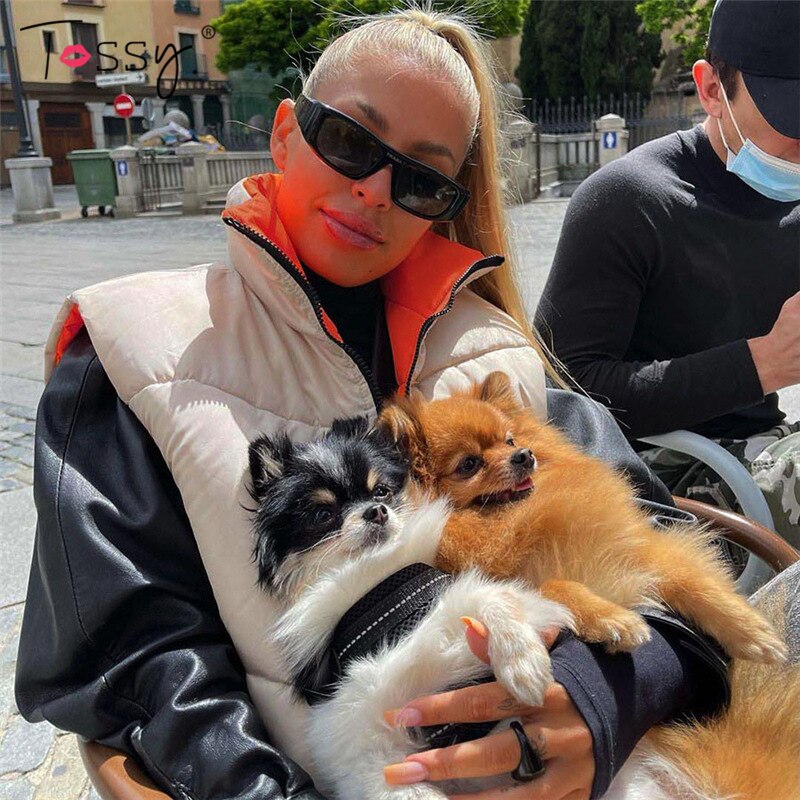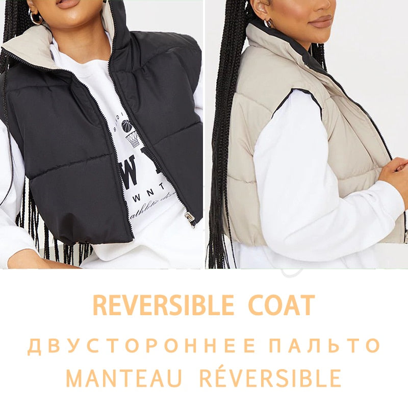 Tossy 2021 New Reversible Coat Vest Short Warm Jacket For Women Turtleneck Zipper Sleeveless Puffer Coat Female Winter New