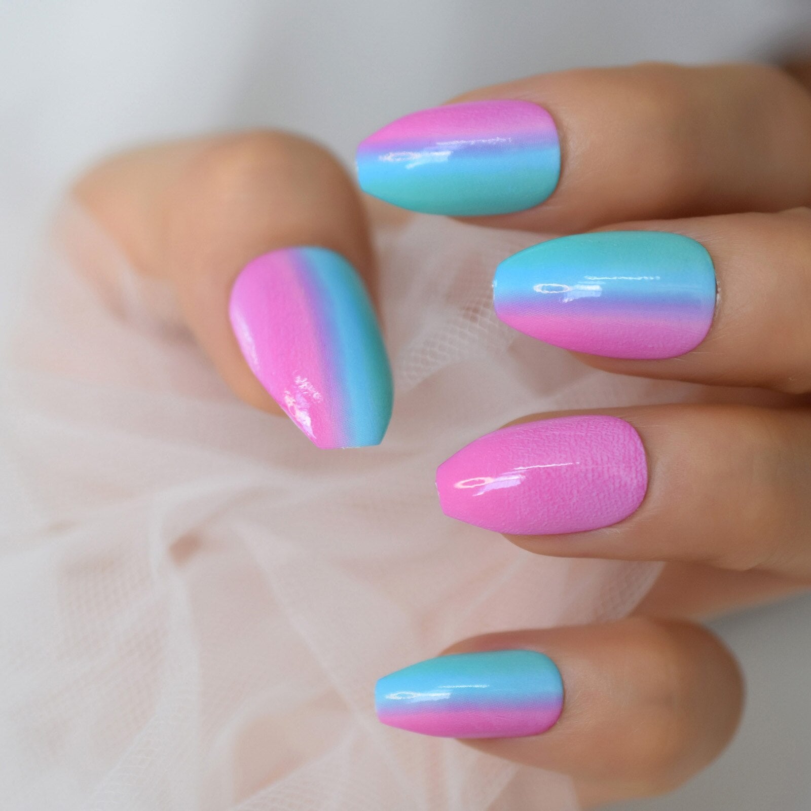 Tricolor Ice Cream Color Texture Rainbow Series Fadeing Medium Short Coffin Supplies For Professionals Wholesale Gels Nail Tips-Nail Inspo