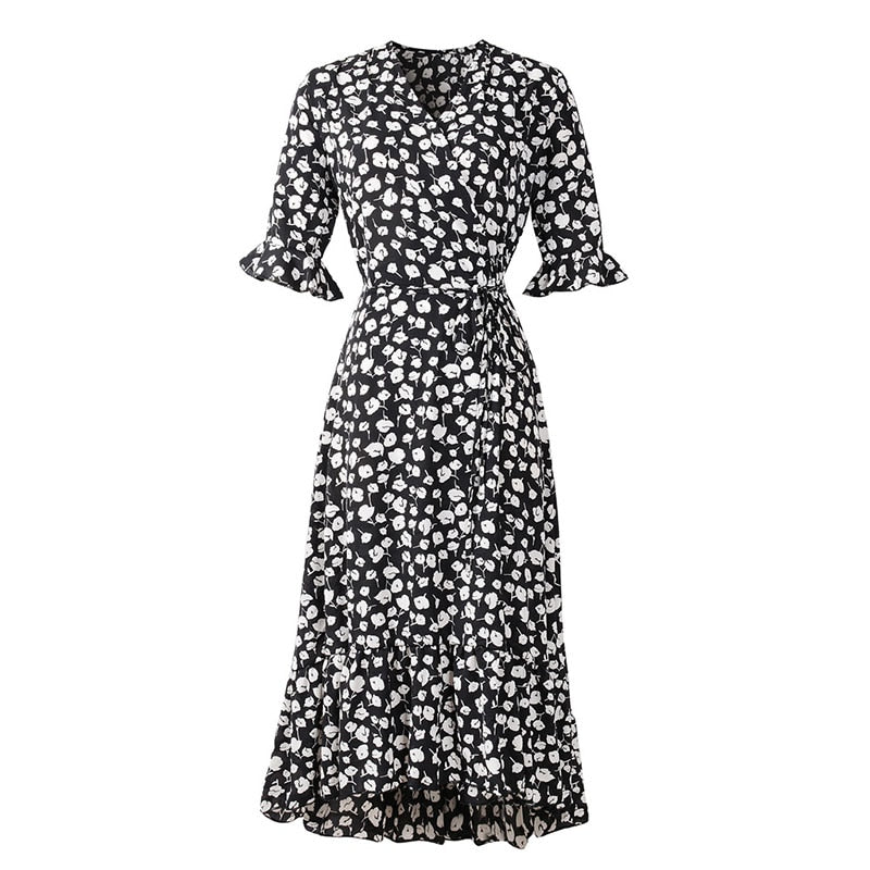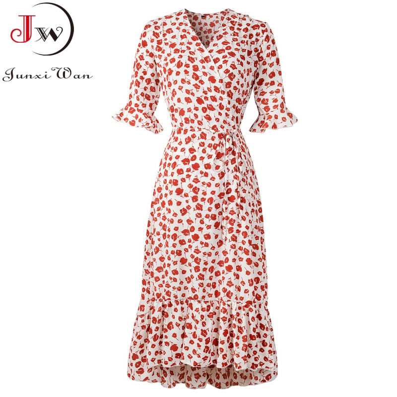 Vintage Floral Printing Women Summer Chiffon Dress 2022 Fashion Casual Elegant Ruffles Short Sleeve Split Boho Beach Sundress