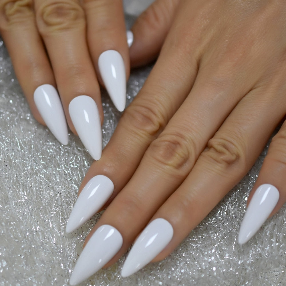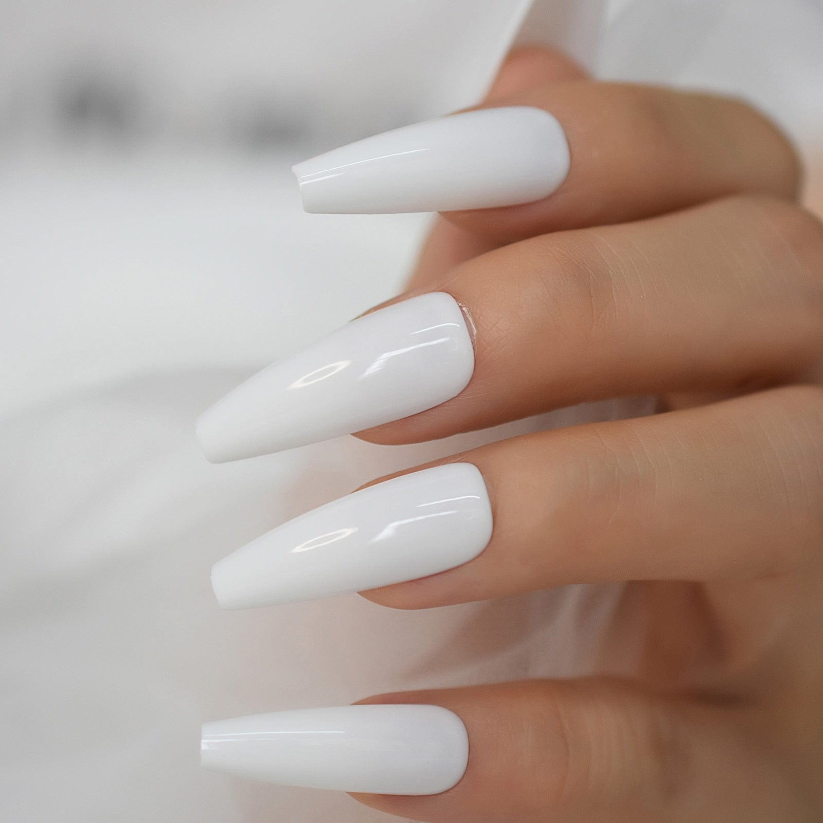 White Fake Nails Press On Acrylic Tips Gel Solid Color Long Coffin Ballerina False Nail Set For Nails Salon DIY Home-Nail Inspo
