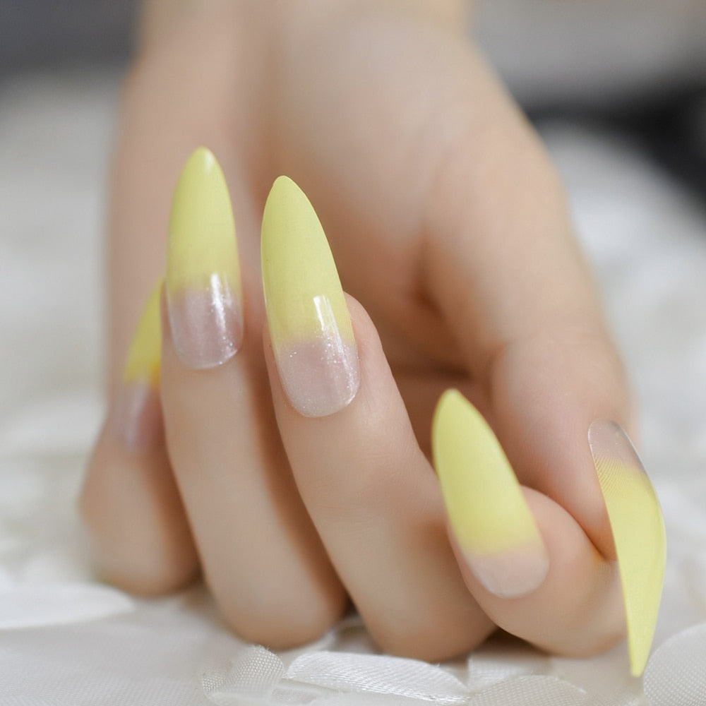 White French Tips Fake Nails Extra Long Stiletto False Nails Natural Painted Long Party Designed Nails 24 Count-Nail Inspo