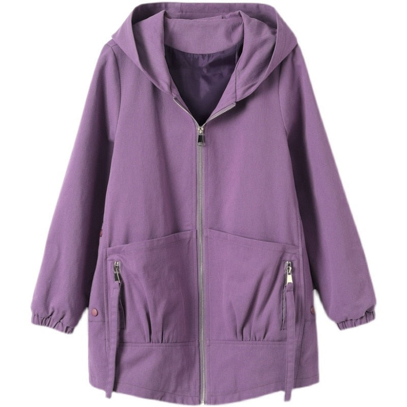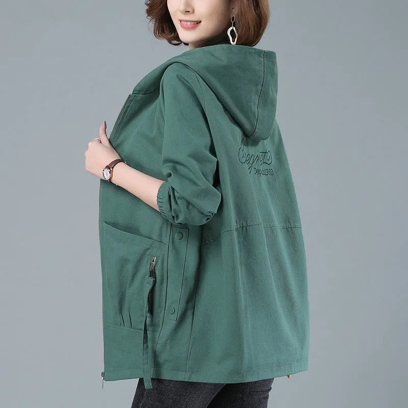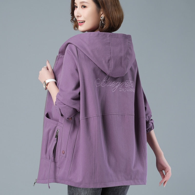 Windbreaker Female New Spring Autumn Jacket Loose Plus Size 4XL Women Hooded Outerwear Casual Tops Coats Women's Clothing AH693