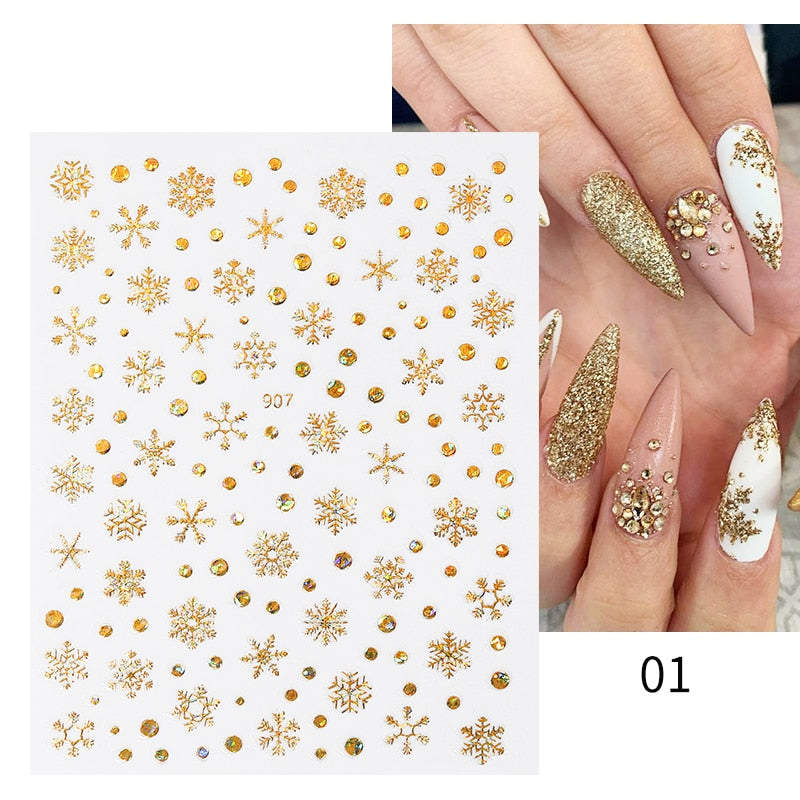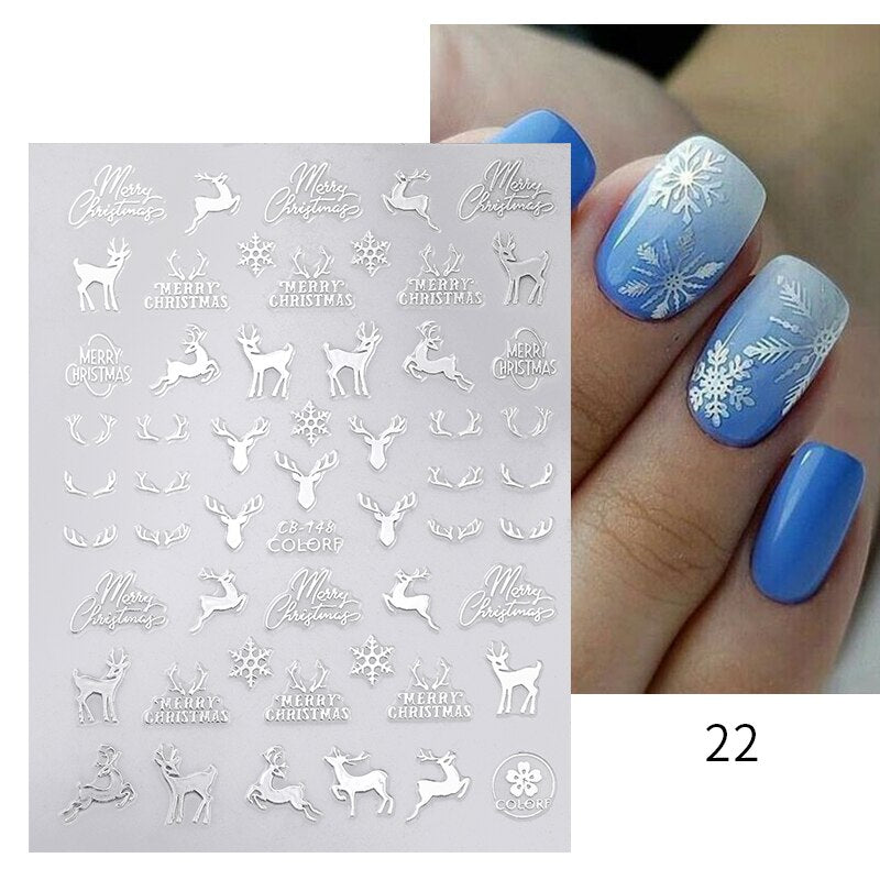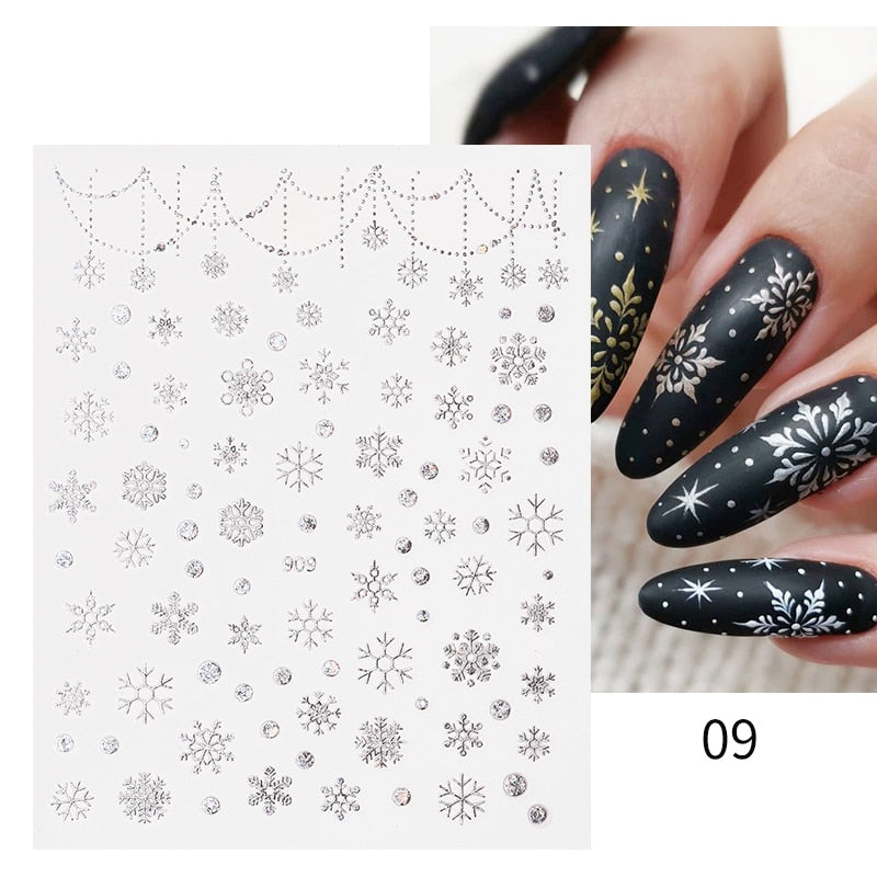 Winter Xmas 3D Nail Sticker Christmas Elk Santa Snowflake Deer Cartoon Slider Design Polish Nails Decals Nail Art DIY Decor Tool-Nail Inspo
