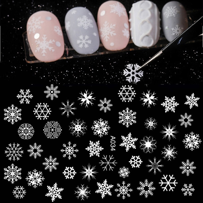 Winter Xmas 3D Nail Sticker Christmas Elk Santa Snowflake Rabbit Cartoon Slider Design Polish Nails Decals Nail Art DIY Decor-Nail Inspo