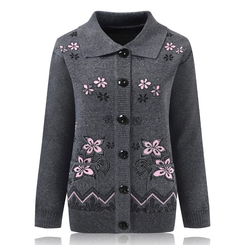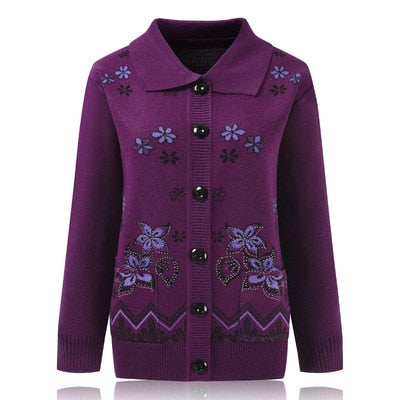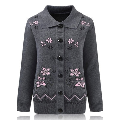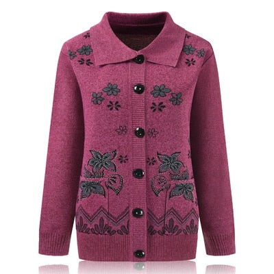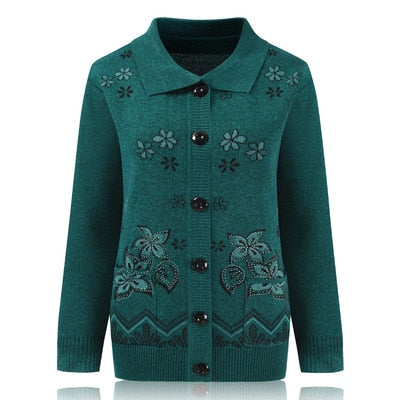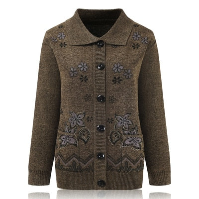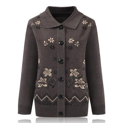 Women Knit Sweater Cardigan Jacket New Middle-aged Clothes Autumn Coat Lapel Single-breasted Long sleeve Sweater Female Tops 889