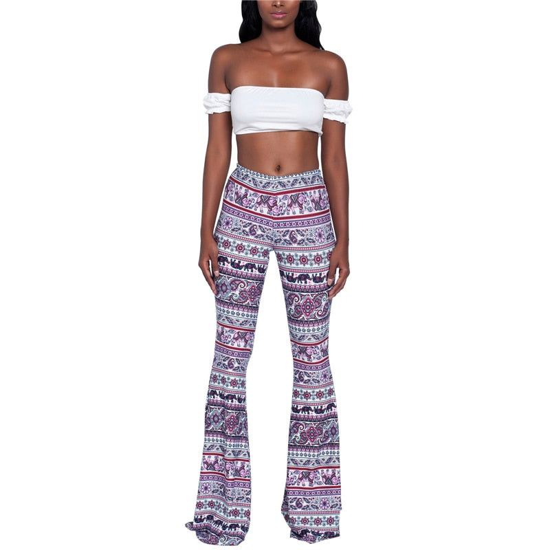 Women Pants New Baggy Flared Pants Boho Style Floral Hippie Wide Leg Gypsy Palazzo Casual Trousers Ladies Bell-bottomed Trousers
