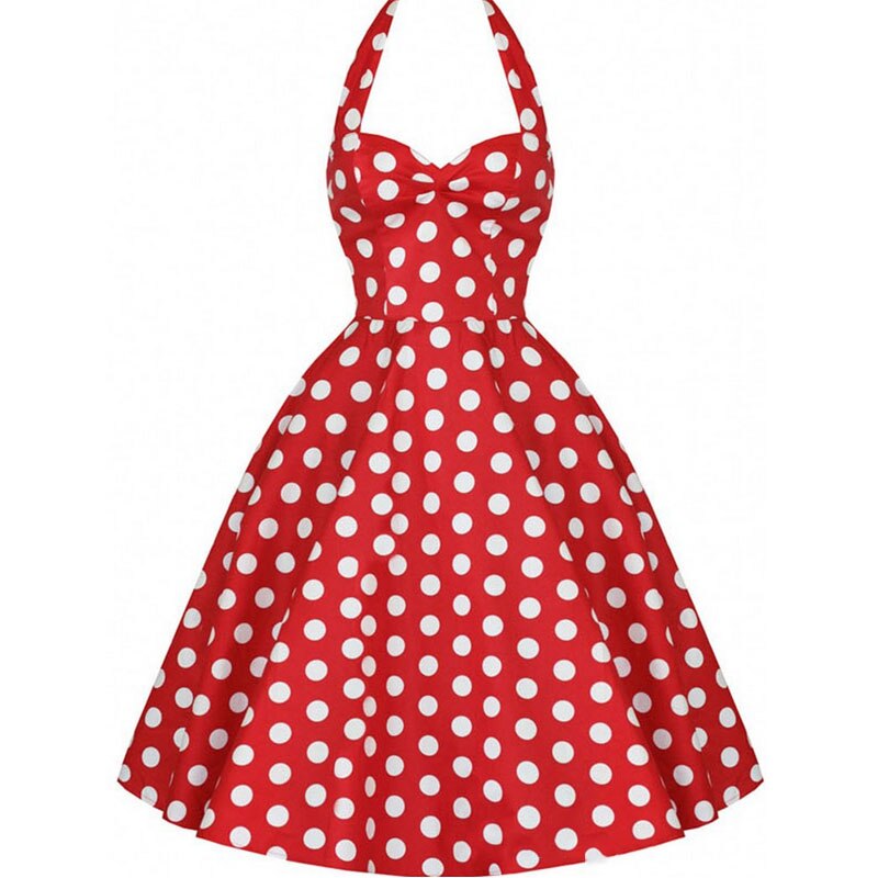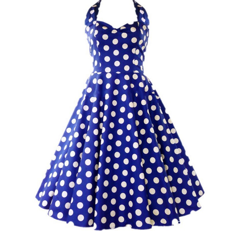 Women Polka Dot Dress Summer Hepburn 50s 60s Vintage Dress A-Line Halter Rockabilly Retro Party Dresses Vestidos
