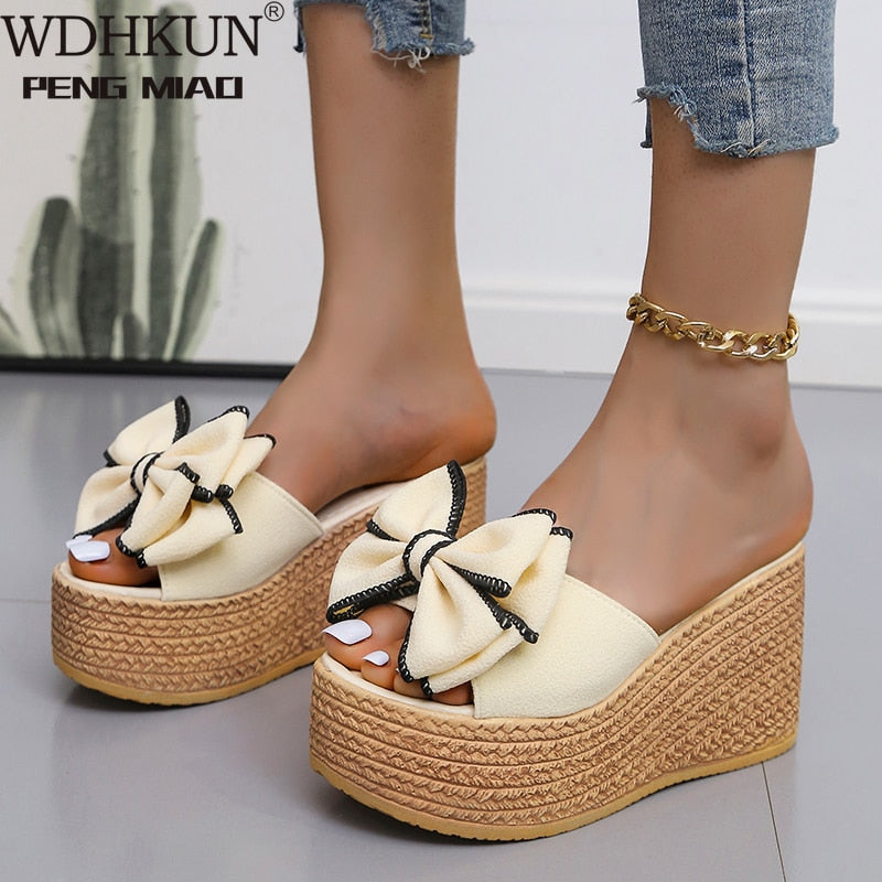 Women Slippers Fashion Pee Toe Summer Shoes Butterfly-knot High Heels Women Slides Platform Wedges Ladies Women Shoes F66