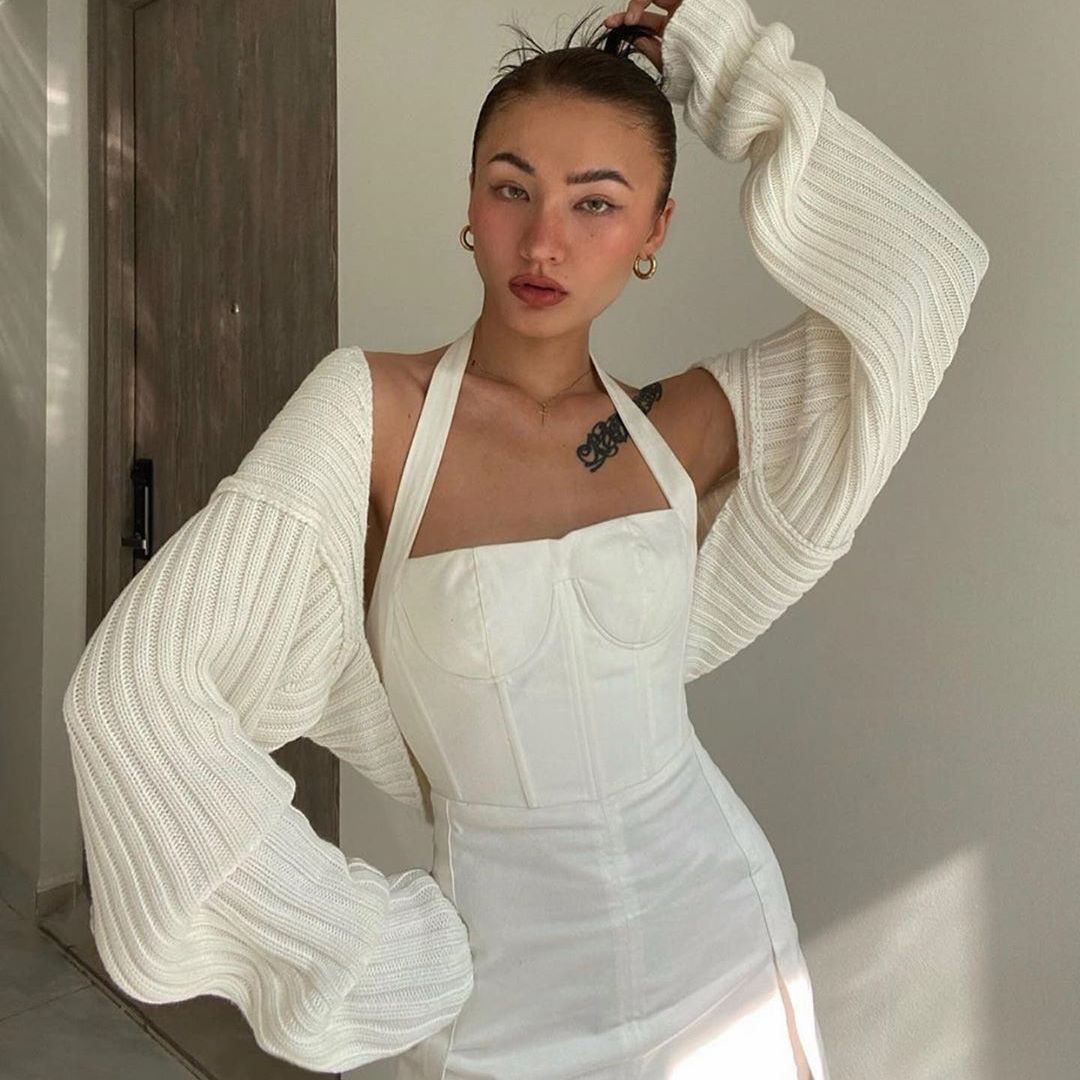 Women Ultra-short Sweater Coat 2021 Autumn Winter Long Sleeve Loose Knitted Crop Tops Solid Color Sexy Cardigan Sweaters Tops