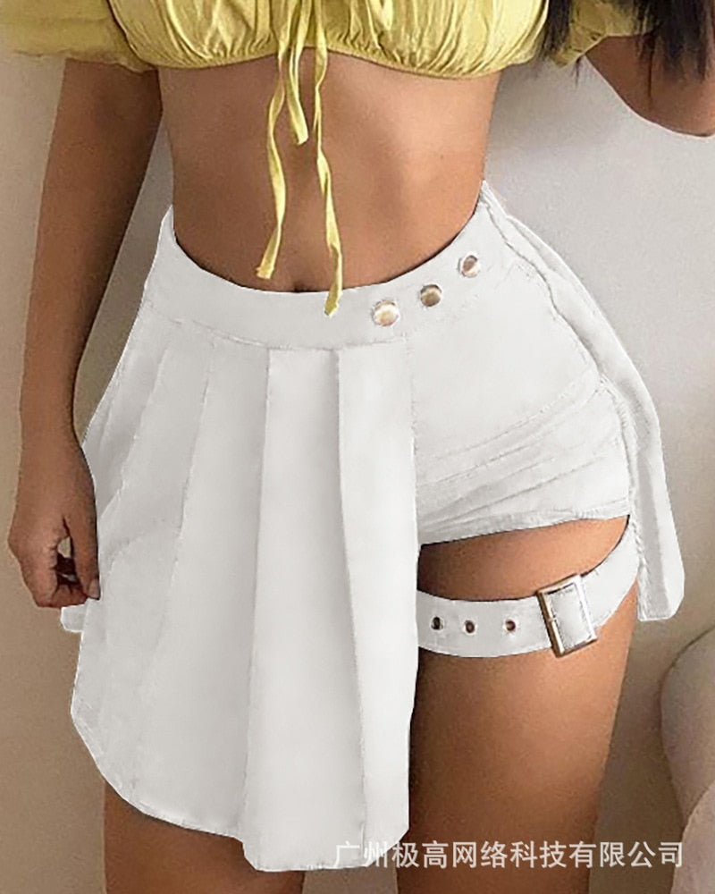 Women's 2021 new solid color asymmetric short skirt