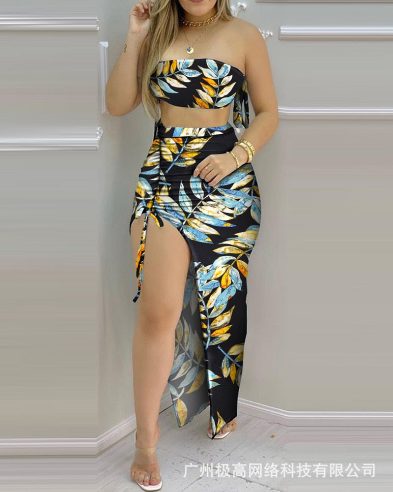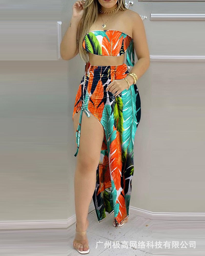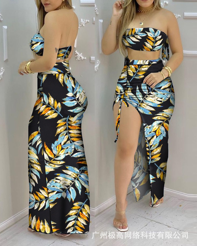 Women's 2021 new tube top pleated two-piece skirt