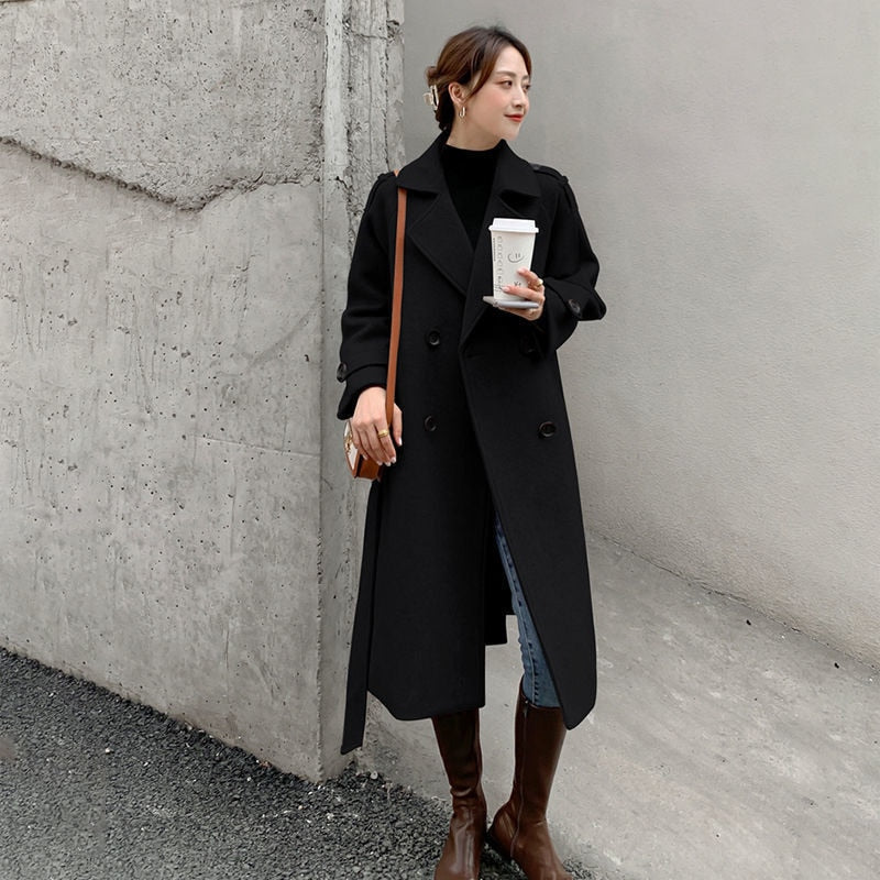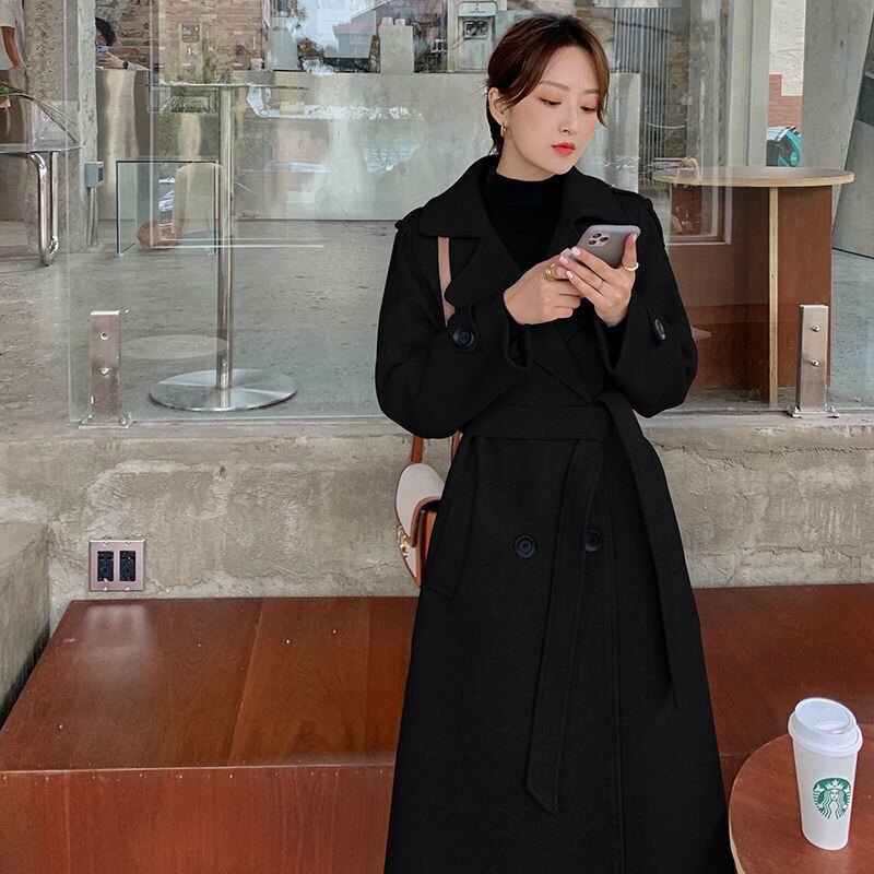 Woolen Coat Women's Middle And Long 2021 New Fashion Korean Over Knee Small Hepburn Wind Waist Closing Woolen Coats