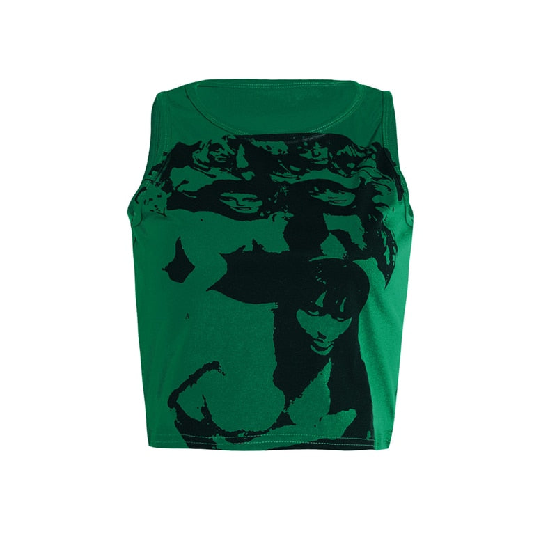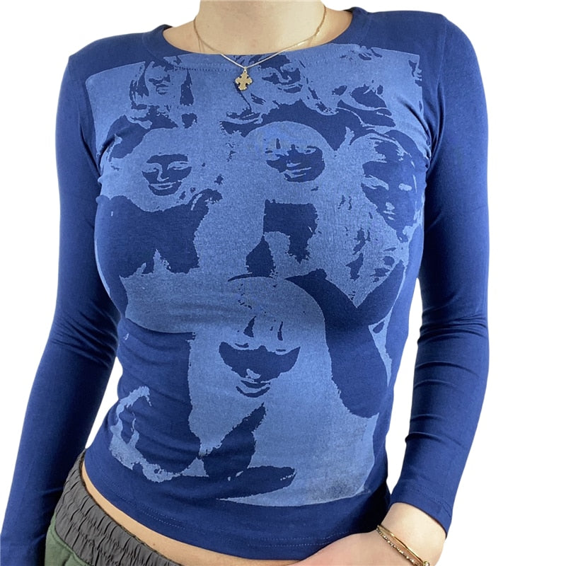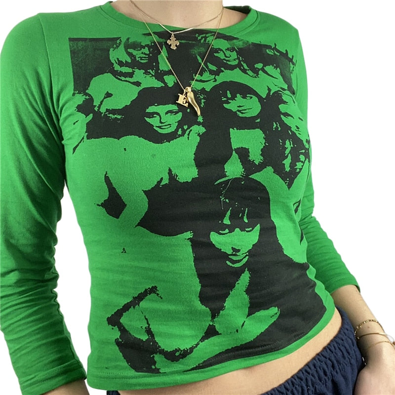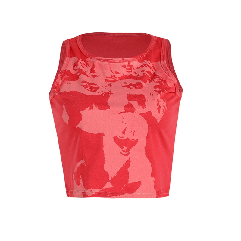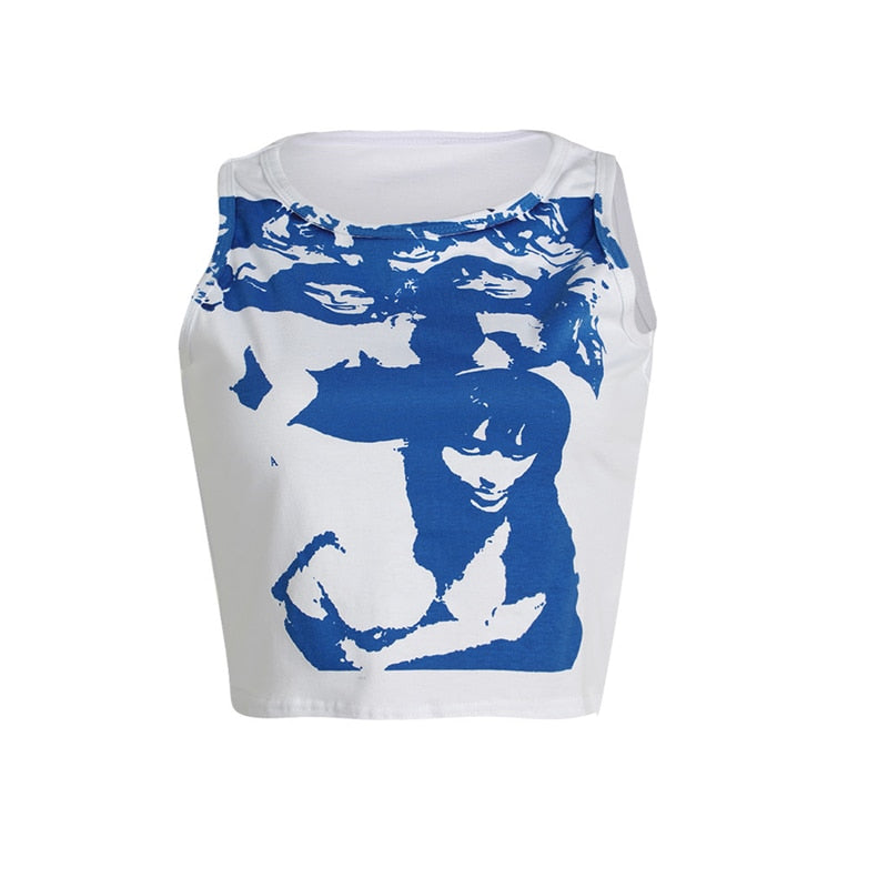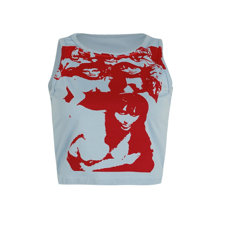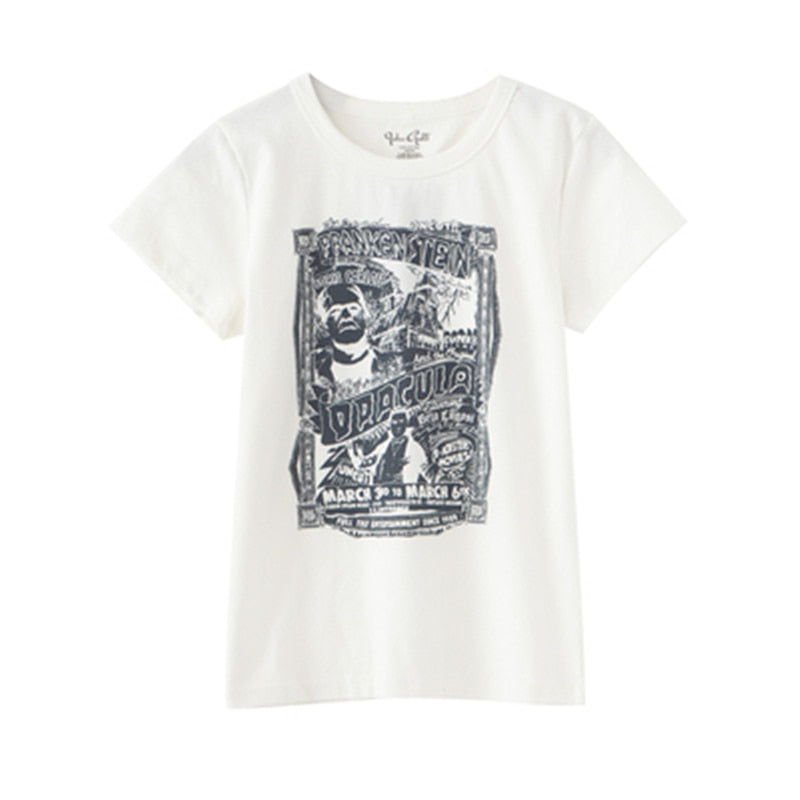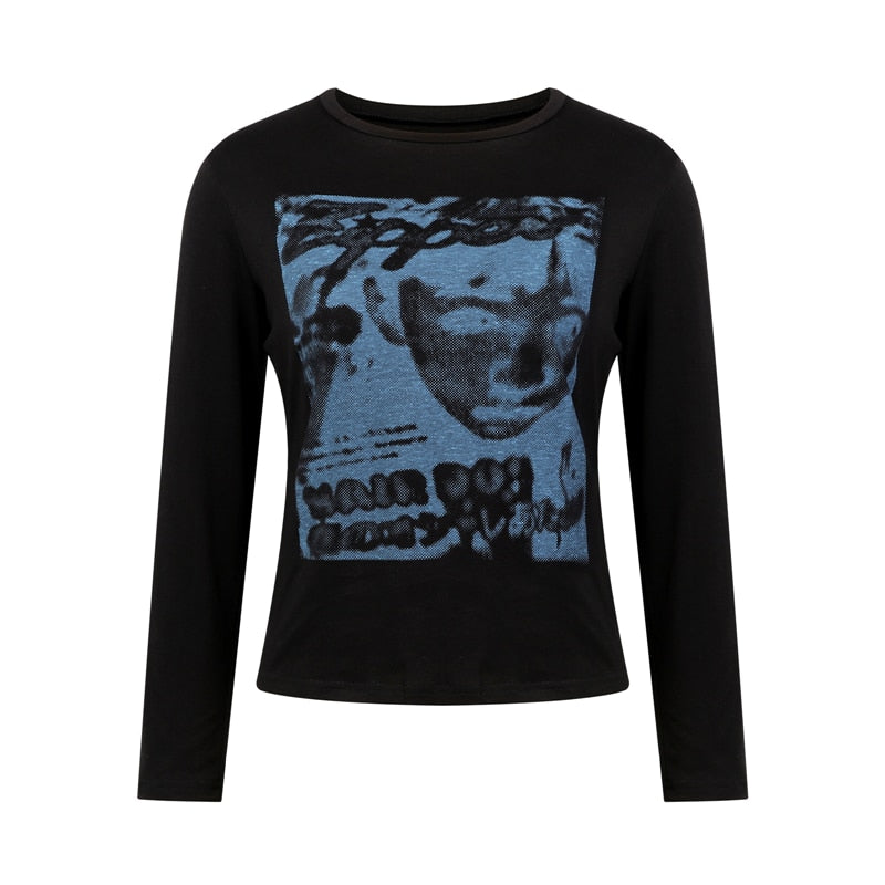 Xingqing Gothic Portrait Print T-shirt Aesthetic Short Sleevle Sweats Tees Harajuku Streetwear White Crop Top Women Clothes