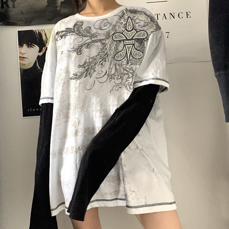 Xingqing Vintage Floral Print T Shirt Women Autumn Round Neck Long Sleeve Shirts Femme Casual Streetwear Y2k Tops 2021 Clothing