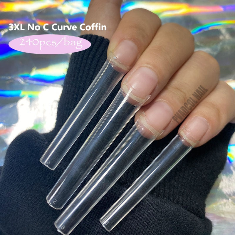 XXL Coffin Nail Tips Half Cover Extra Long C Curve Acrylic Extension Builder False Nails DIY Press On Tips Manicure Salon Supply-Nail Inspo