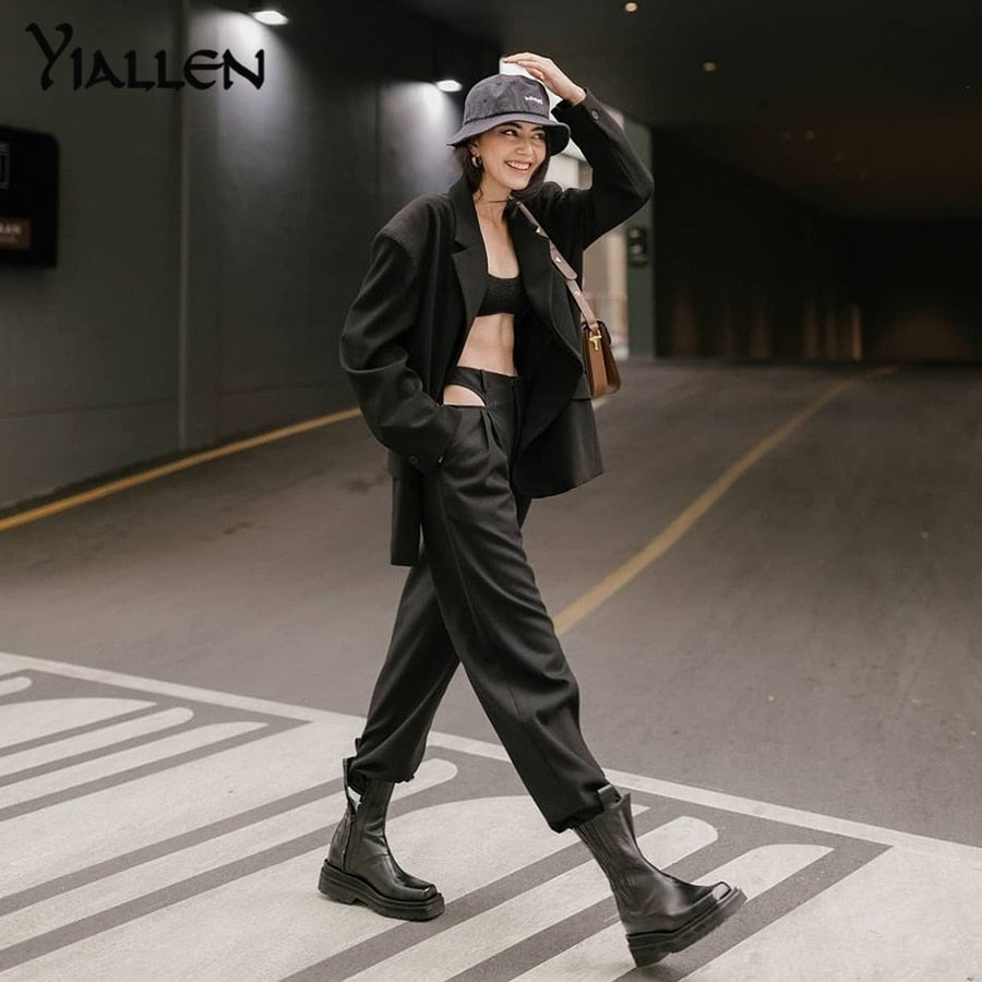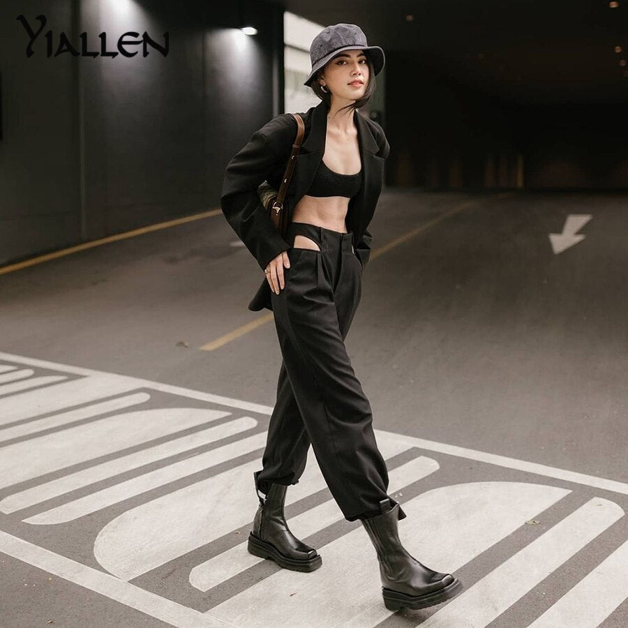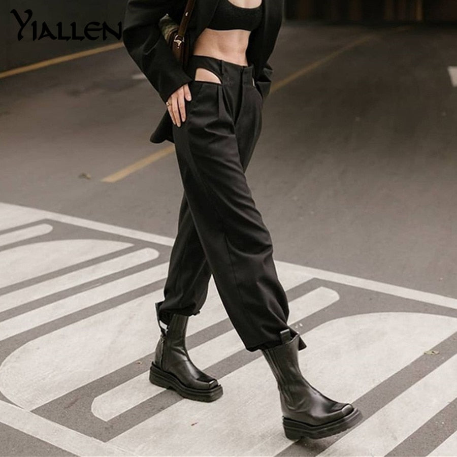 Yiallen 2021 Harajuku High Waist Hin Thin Bandage Straight Pants Female High Quality ActivityTrousers Kpop Street Leisure Pants