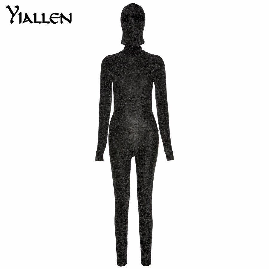 Yiallen 2021 Sexy Backless Shiny Jumpsuit + Mask Two Piece Outfits Women Matching Set Spring Night Party Club Femme Activewear