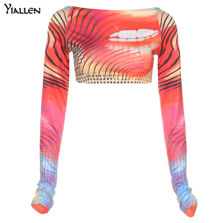 Yiallen Autumn Colorful Print Y2K Crop Tops New Women Sexy Backless Long Sleeve T-Shirts Hipster Skinny Hip Hop Tees Streetwear