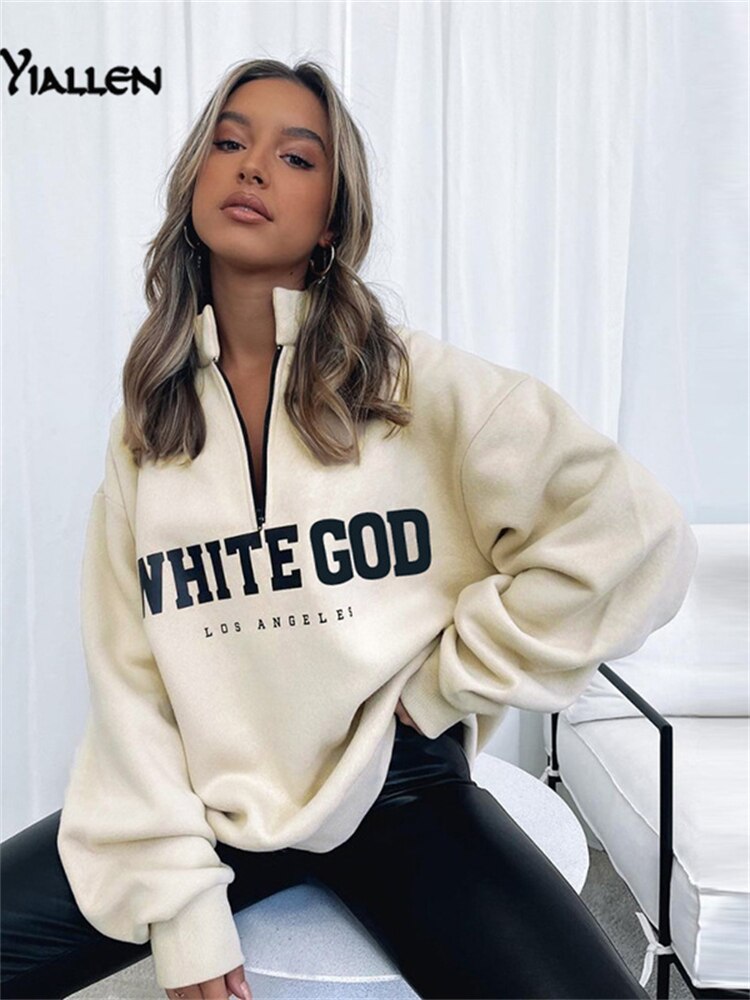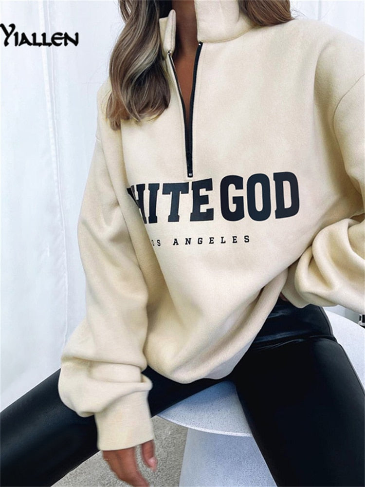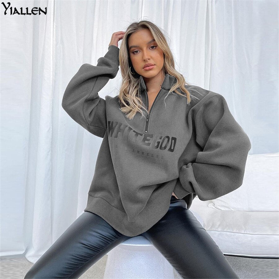 Yiallen Autumn New Fashion Casual Street Print Letter Loose Pullover Hoodies For Women Simple Warm Thicken Sweatshirts Female